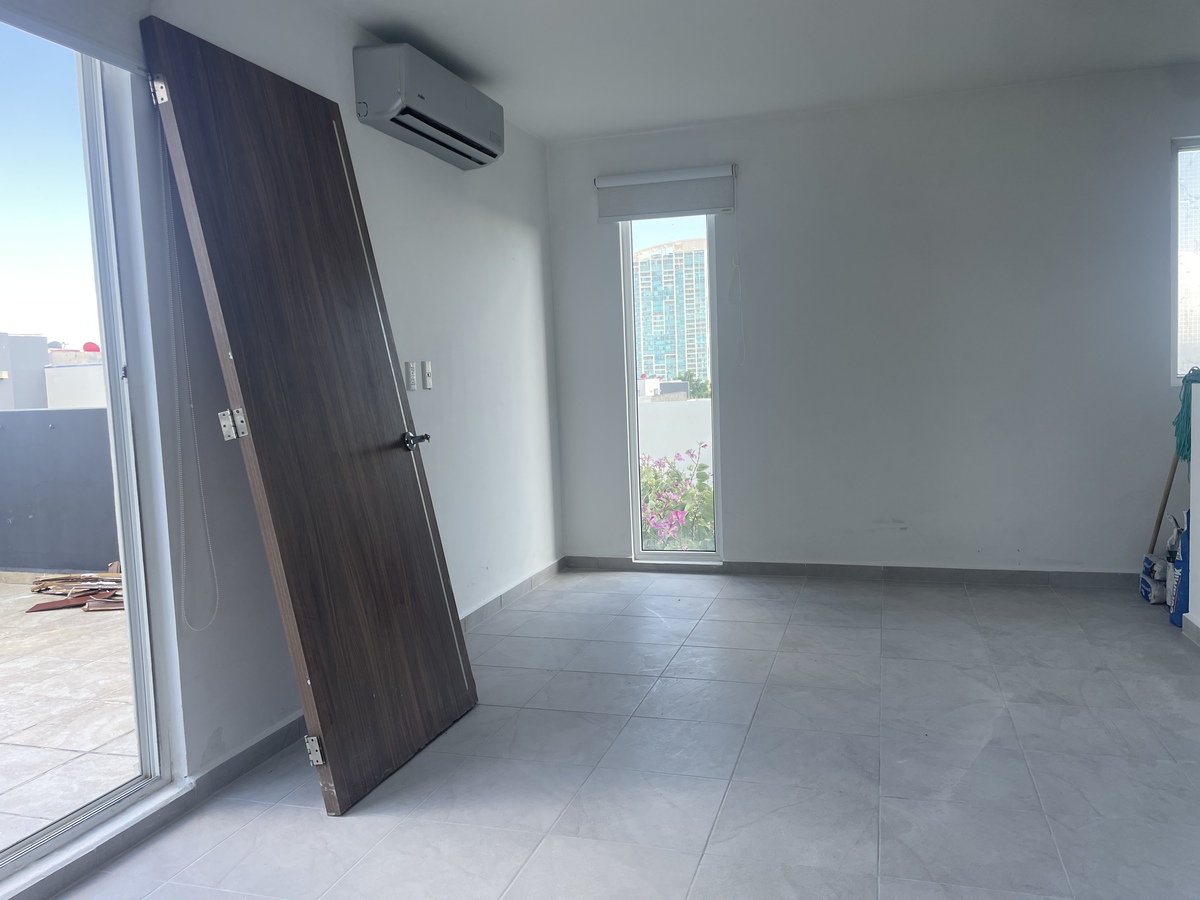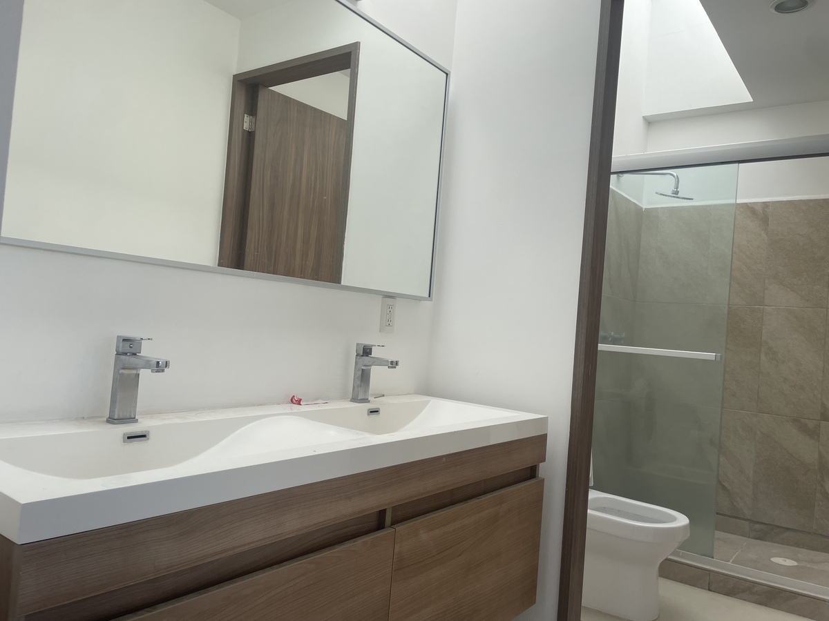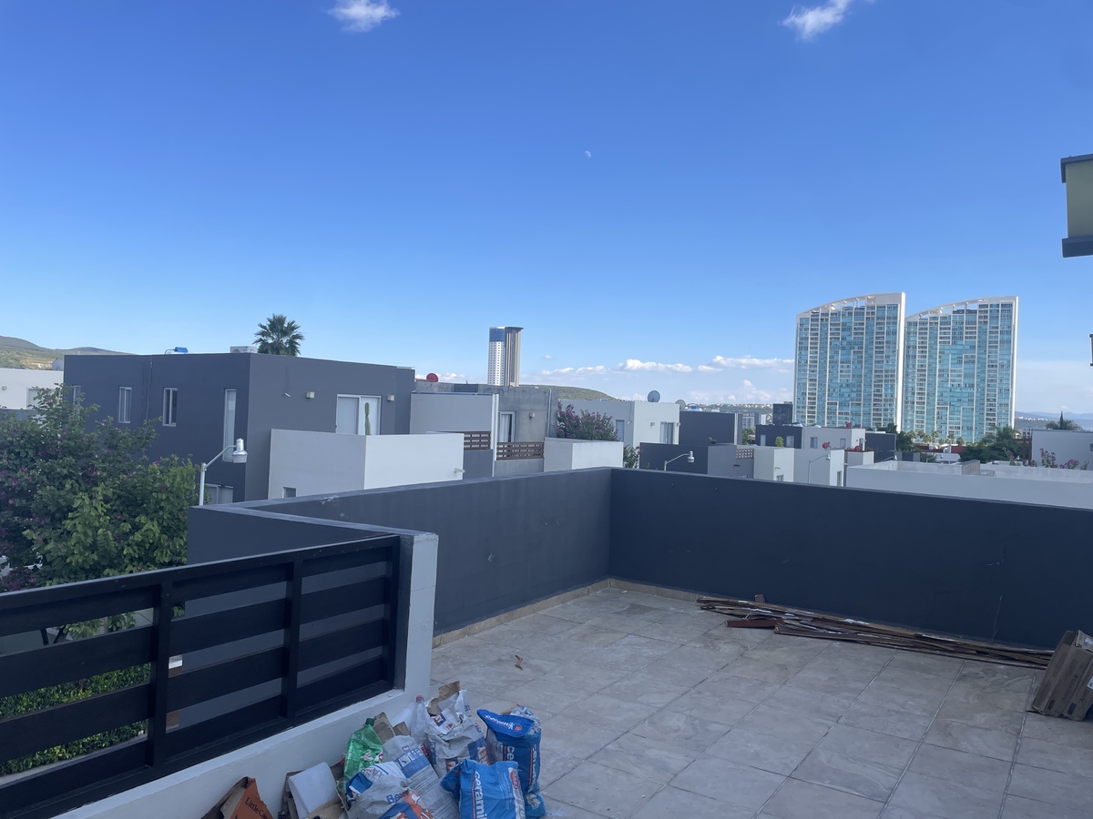 Casa en Condominio. Cuenta en la planta baja con Sala comedor y Cocina en concepto abierto con barra de granito, área de lavado, medio baño de visitas y jardín. Subiendo las escaleras amplia área de TV 2 recamaras secundarias ambas con closets y dos baños completos. Subiendo al tercer nivel amplia recamara principal con vestidor, baño completo, mini split y Terraza Roof Top. El condominio tiene espectaculares amenidades, alberca con camastros, jardines, área de juegos infantiles, gran gimnasio y salón de eventos. Seguridad privada 24/7 . Viva rodeado de hermosos parques, amplias avenidas, excelente ubicación caminando a áreas comerciales