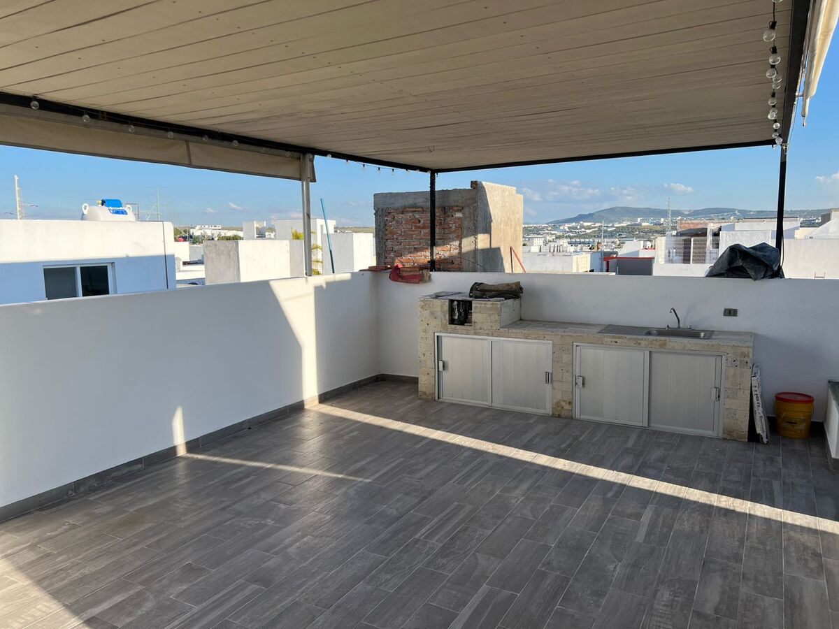 Amplia, bonita y comoda casa de 3 niveles. En planta baja cochera para 3 autos, sala comedor, cocina integral equipada con isla y lavavajillas , medio baño, cuarto de lavado, jardín. Segundo piso 3 recamaras, la principal con amplio vestidor y baño completo, las secundarias comparten un baño, sala de tv. Tercer nivel roof garden techado con asador, muro para pantalla de tv, medio baño. La casa cuenta con closets, barandales de cristal templado, cortinas blackout, cisterna, boiler. Dentro de privada con amenidades como alberca techada, salón de eventos, canchas deportivas,áreas verdes con juegos, estacionamiento de visitas, minisuper, salon de acondicionamiento físico,caseta de vigilancia, plumas eléctricas en el acceso, videocamaras. En una de las mejores zonas residenciales de Querétaro, cerca de los Arcos, el centro, Av Bernardo Quintana, av constituyentes y salida a CDMX. Con todo tipo de servicios y comercios en la zona. LLAMA Y AGENDA HOY PARA ADQUIRIR TU NUEVO HOGAR.