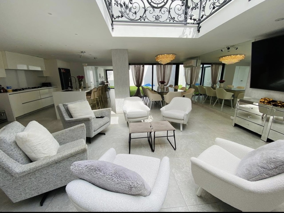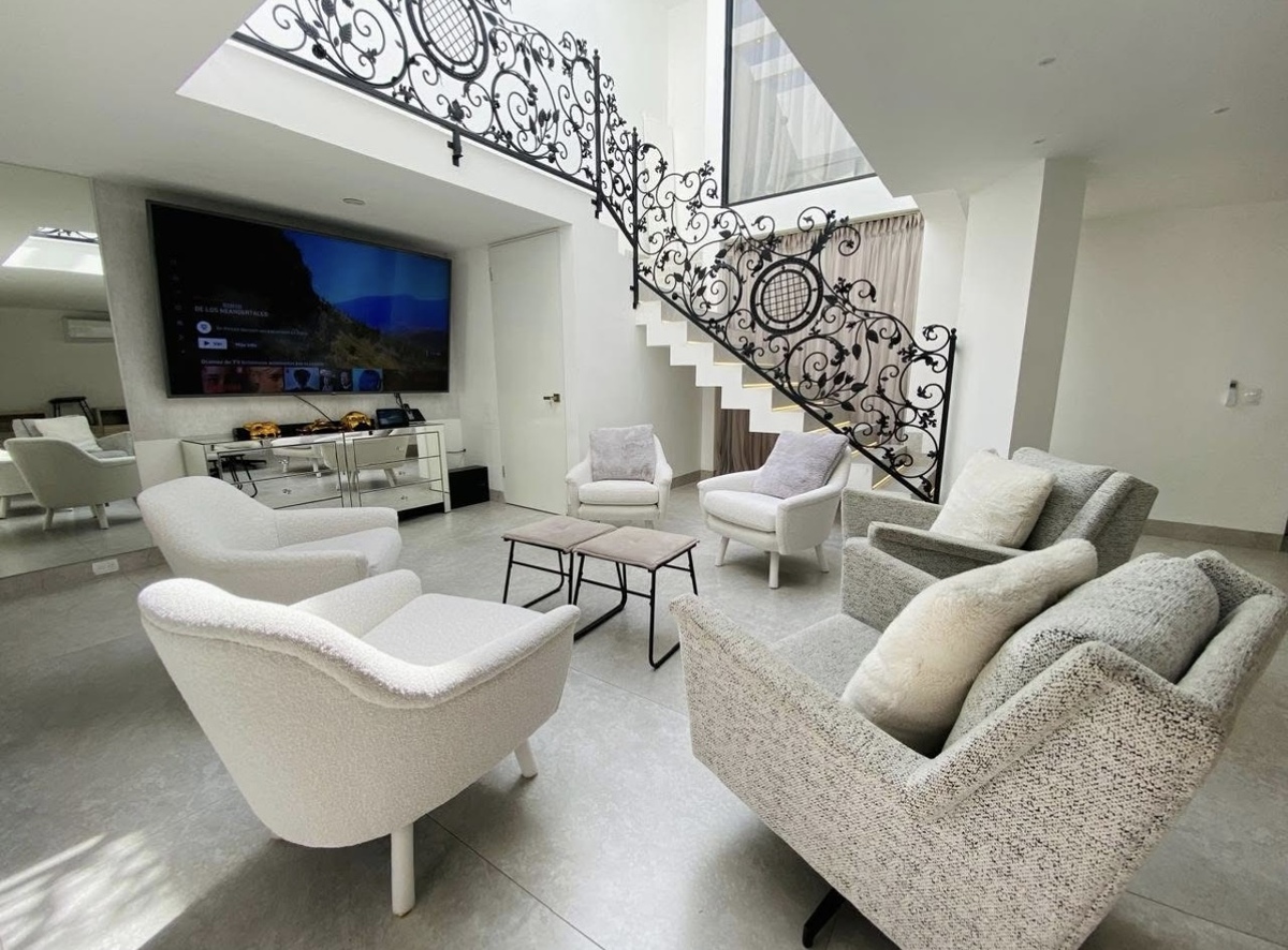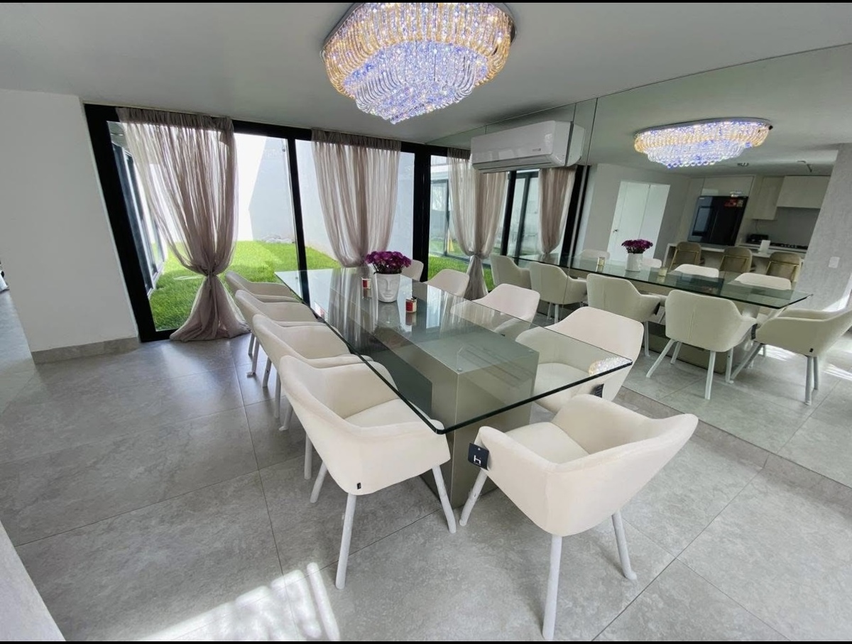 Casa moderna y elegante con acabados de lujo, dos plantas. En la planta alta cuenta con 3 recámaras cada una con su baño completo y closets nuevos , la recámara principal con walk in clóset grande increíblemente iluminado, elegante y funcional. Iluminación en fachada y escaleras dimeables. En planta baja cuenta con una cocina muy equipada, tiene 2 estufas nuevas que en total suman 12 quemadores, cuenta con plancha para Teppanyaki en la isla. Candiles modernos increíbles. Baño completo para visitas en planta baja, Tiene un jardín amplio con sistema de riego coordinable con Alexa o con celular, es una casa inteligente que permite coordinar los climas y el portón a través del celular. Cuenta con dos tinacos nuevos 1850 Lts en total cada tinaco con su hidroneumático y sus filtros de carbono especiales para purificar el agua. La cochera es para dos autos con portón eléctrico sincronizado al cel y por fuera se puede estacionar un tercer auto. También cuenta con circuito cerrado de seguridad, y con climas inverter Mirage nuevos sincronizados con alexa al celular.