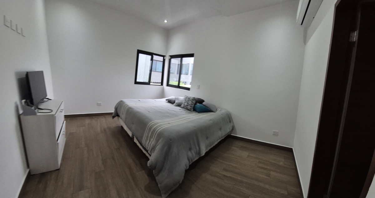 Beautiful house for rent furnished or unfurnished in a private neighborhood with a security booth, incredible amenities, clubhouse with spacious social areas, basketball courts, soccer fields, children's playgrounds, VIP palapa, amazing pools, one of which is Olympic-sized. The rental price includes maintenance of the neighborhood and clubhouse fee. The house has a large entrance hall, a half bathroom, a modern living-dining room, a fully equipped kitchen, a service room with a bathroom, and a patio with a grill. On the second floor, there is a TV lounge as well as 3 bedrooms with spacious bathrooms and walk-in closets. For added convenience, the laundry room is located on the second floor. Additionally, the house has central air conditioning on the ground floor and mini-splits; 5 exterior security cameras and an electrified fence alarm. Come see it, you will love it.Preciosa casa en renta amueblada o sin amueblar en en colonia privada con caseta de vigilancia increíbles amenidades casa club con amplias áreas sociales canchas de basquetball fútbol juegos infantiles palapa vip gimnasio increíbles albercas una es olimpica. El precio de renta incluye mtto de la colonia y cuota de casa club. La casa cuenta con amplio recibidor medio baño Sala comedor moderna cocina totalmente equipada cuarto se servicio con baño patio con asador en el 2do piso se encuentra la estancia de televisión además de 3 recámaras con amplios baños y walking closets además para mayor comodidad la lavanderia se encuentra en 2do piso. Además la casa cuenta con aire central en planta baja y minisplits; 5 cámaras de seguridad exterior y cerco electrificada alarma. Conozcala la encantará. (RT)