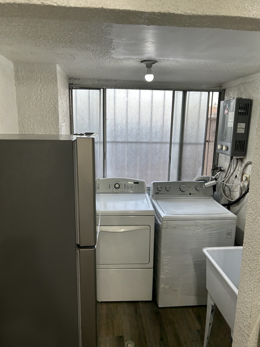 • Área de lavandería con lavadora y secadora.