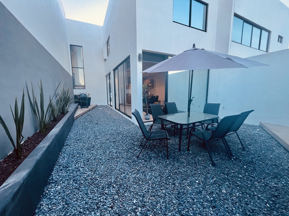 El jardín cuenta con asador y mesa, para disfrutar de tiempos de convivencia y descanso.