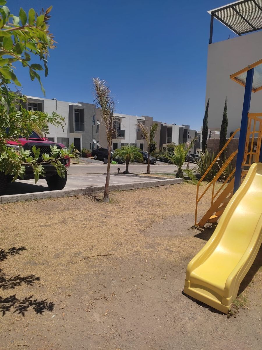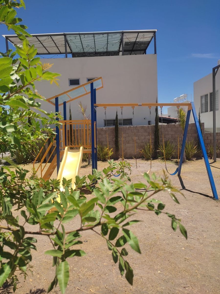 Jardín con juegos infantiles.