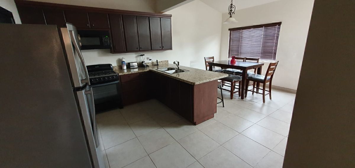 Single-level house in one of the best private subdivisions in the city, with 24-hour security and common areas for residents, with basketball courts and children's games, as well as a viewpoint with spectacular views of the sea from where you can enjoy the beautiful sunsets. The house is fully furnished and equipped. It consists of a living room with comfortable armchairs, pedestal fan, gas heater and Smart TV, dining room with table for 6 people and kitchen with natural stone countertops and bar with 3 stools, equipped with everything you need. Master bedroom with full bathroom, walk-in closet and mini-split. A second bedroom with closet, fan and gas heater. Full bathroom in the hallway. The 2 bedrooms include bedding and both bathrooms with towels. Laundry room integrated into the house with washing machine, dryer and water heater. Open garage with electric gate, garden and an outdoor space at the back of the house with a patio table and chairs. NO PETS In all our rentals no guarantee is required, the payment of a legal policy with protection to the owner is requestedASVARenta de casa de un solo nivel en uno de los mejores fraccionamientos privados de la ciudad, con seguridad 24 horas y áreas comunes para los residentes, con canchas De básquetbol y juegos infantiles, además de un mirador con vistas espectaculares al mar desde donde se disfrutan los bellos atardeceres. La casa se encuentra totalmente amueblada y equipada. Consta de sala con cómodos sillones, ventilador de pedestal, calentón de gas y Smart T.V., comedor con mesa para 6 personas y cocina con encimeras de piedra natural y barra con 3 taburetes, equipada con todo lo necesario. Recamara principal con baño completo, closet-vestidor y minisplit. Una segunda recamara con closet, ventilador y calentón de gas. Baño completo en el pasiilo. Las 2 recamarás incluyen ropa de cama y ambos baños con toallas. Cuarto de lavado integrado a la casa con lavadora, secadora y calentón para agua. Cochera descubierta con portón eléctrico, jardín y un espacio exterior en la parte de atrás de la casa con mesa y sillas de patio. NO SE ADMITEN MASCOTAS En todas nuestras rentas no se requiere aval, se solicita el pago de una póliza jurídica con protección al propietario ASVA **ENGLISH** Single-level house in one of the best private subdivisions in the city, with 24-hour security and common areas for residents, with basketball courts and children's games, as well as a viewpoint with spectacular views of the sea from where you can enjoy the beautiful sunsets. The house is fully furnished and equipped. It consists of a living room with comfortable armchairs, pedestal fan, gas heater and Smart TV, dining room with table for 6 people and kitchen with natural stone countertops and bar with 3 stools, equipped with everything you need. Master bedroom with full bathroom, walk-in closet and mini-split. A second bedroom with closet, fan and gas heater. Full bathroom in the hallway. The 2 bedrooms include bedding and both bathrooms with towels. Laundry room integrated into the house with washing machine, dryer and water heater. Open garage with electric gate, garden and an outdoor space at the back of the house with a patio table and chairs. NO PETS In all our rentals no guarantee is required, the payment of a legal policy with protection to the owner is requestedASVA