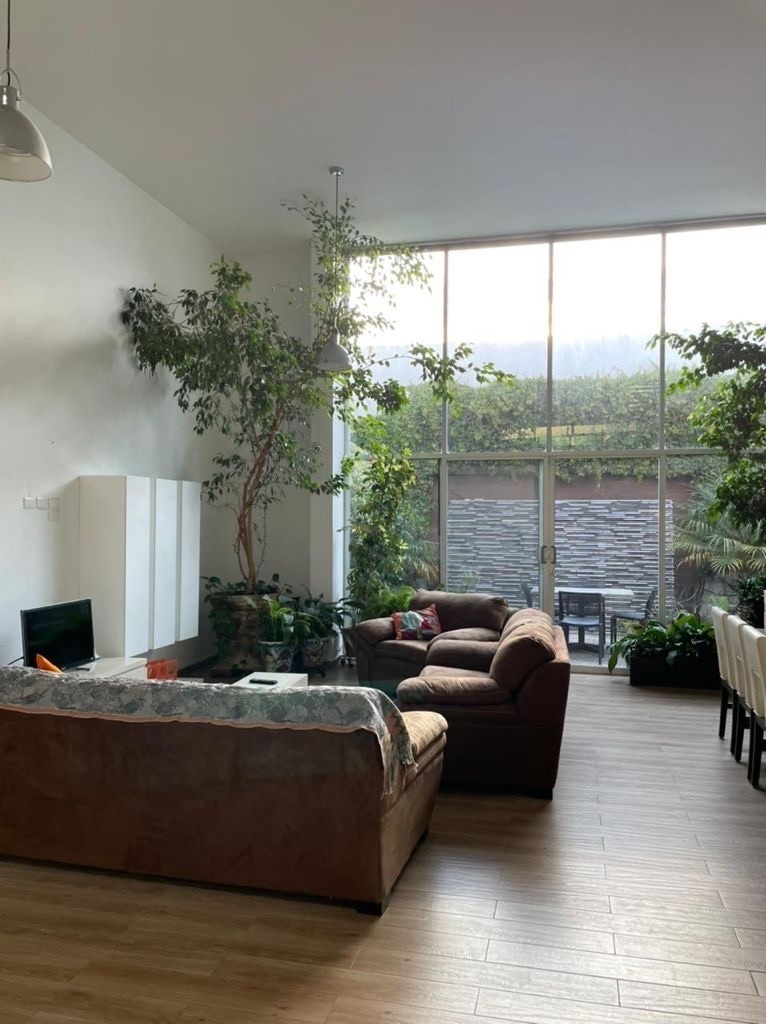 Double-height house with a main room, an office or second room, open kitchen, living-dining room, private roof garden with a view of Popocatépetl and garden. Covered garage with space for 2 cars