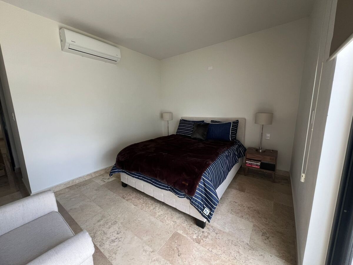 Recámara secundaria /lock off con Cet de pared y baño completo con balcón.