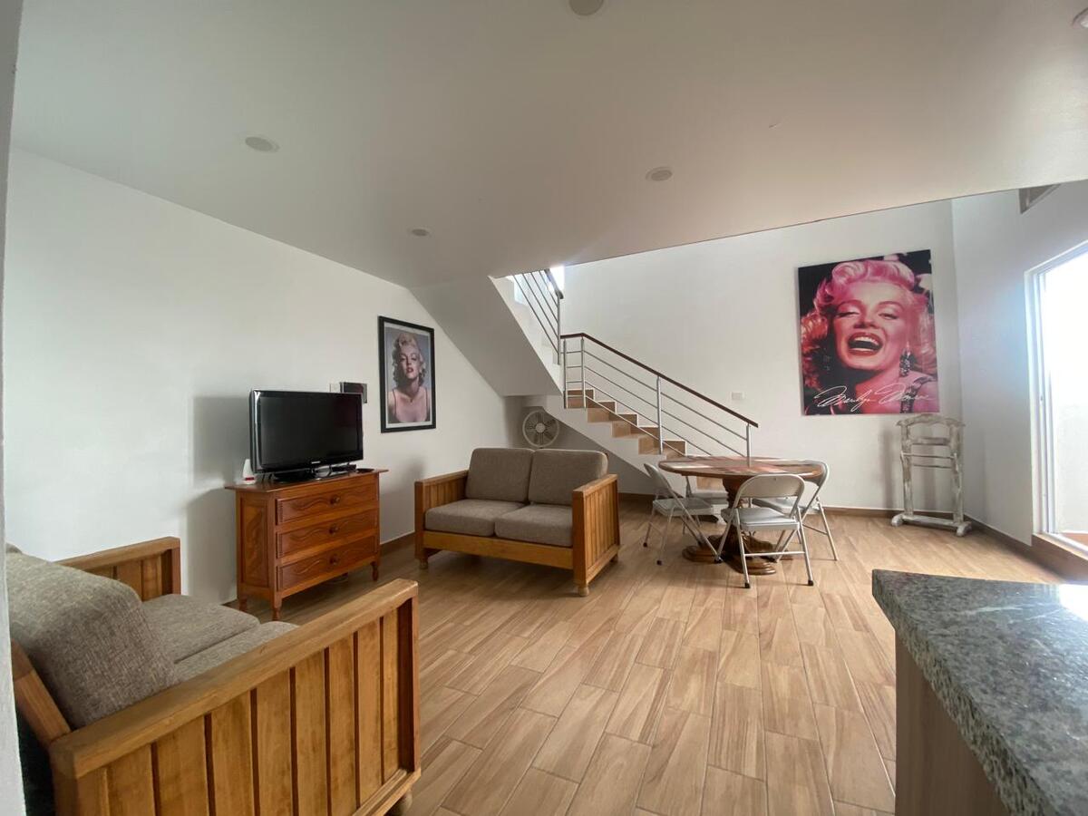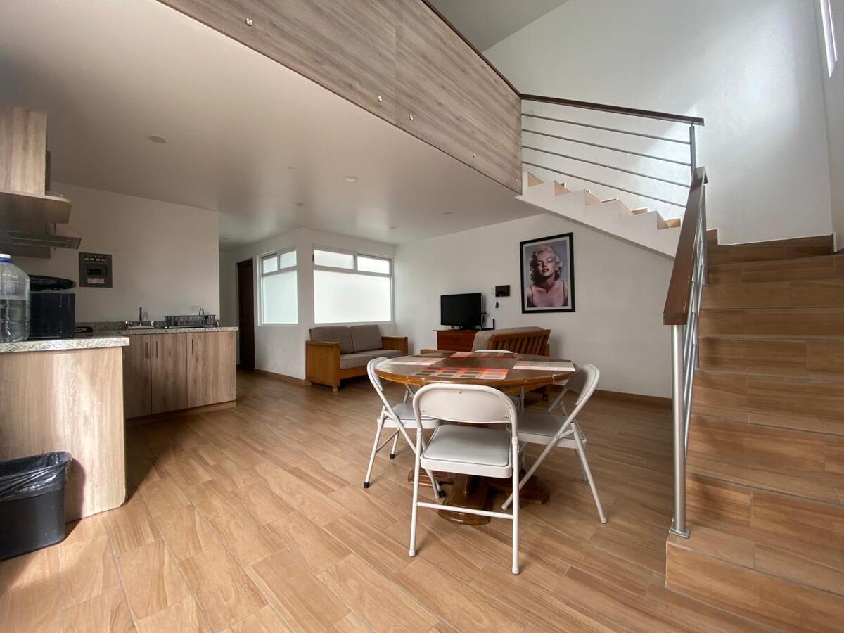 * Encontrarás una cómoda estancia abierta de doble altura, con dos love seat para recibir a tus visitas y un antecomedor para 4 personas, además de una cocina abierta de buen tamaño con todo lo necesario para preparar delicias culinarias y un frigobar.