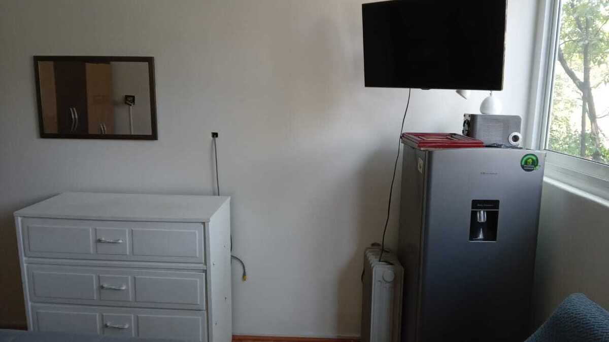 Excellent fully equipped apartment, it has a fully equipped kitchen with refrigerator, hybrid stove, automatic washer-dryer, microwave oven, and pantry. Master bedroom with double bed, modern desk with executive chair and closet, living room and dining room with display cabinet and bar, and full bathroom with linen closet. It has an elevator, the area is 50 m2, and the location is unbeatable with easy access to public transport services, security with a doorman from 8 am to 8 pm, and surveillance cameras with CCTV.Excelente departamento completamente equipado, cuenta con Cocina integral equipada con refrigerador, estufa hibrida, lavasecadora automática, horno de microondas y alacena, Recamara principal con cama matrimonial, escritorio moderno con silla ejecutiva y closet, Sala y comedor con vitrina y servibar y Baño completo con closet para blancos, cuenta con elevador, la superficie es de 50 m2, y la Ubicación es inmejorable con fácil acceso a servicios de transporte público, vigilancia con portero de 8am a 8pm y camaras de vigilancia con CCTV.