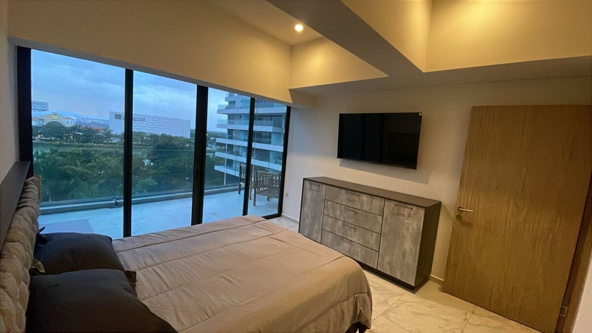 - Recámara secundaria: Cama Queen Size, Smart TV, clóset de pared y vista al balcón.