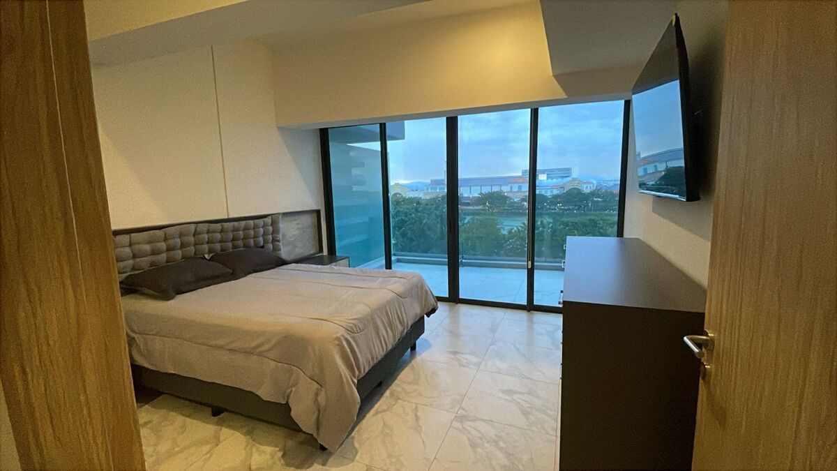 - Tercera recámara: Cama Queen size, Smart TV, clóset de pared y vista al balcón.