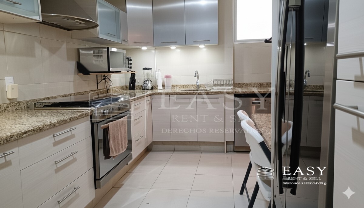 La sala, comedor y cocina cerrada ofrecen privacidad y comodidad, complementadas con cuarto de servicio con baño.