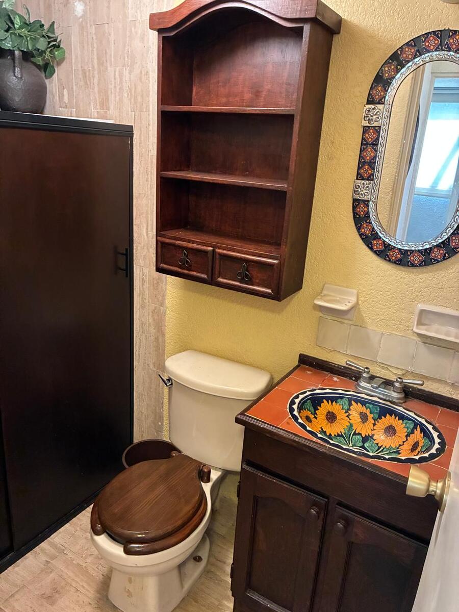 Cuenta con sala y comedor que comparten espacio con un pequeño estudio y medio baño.