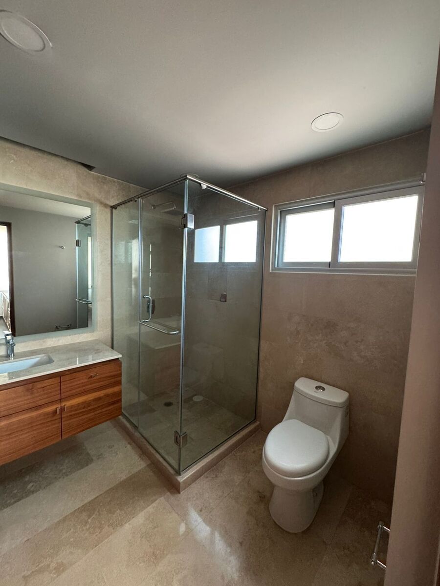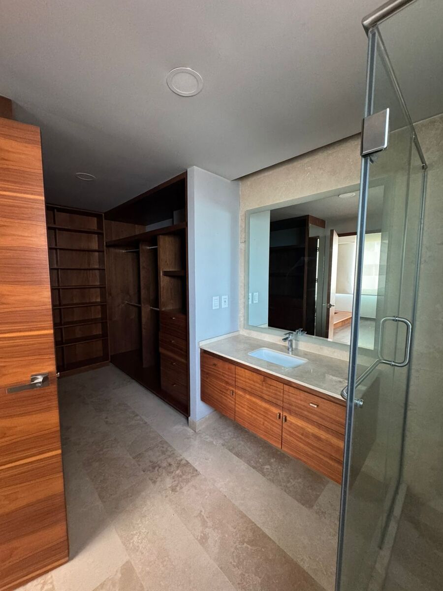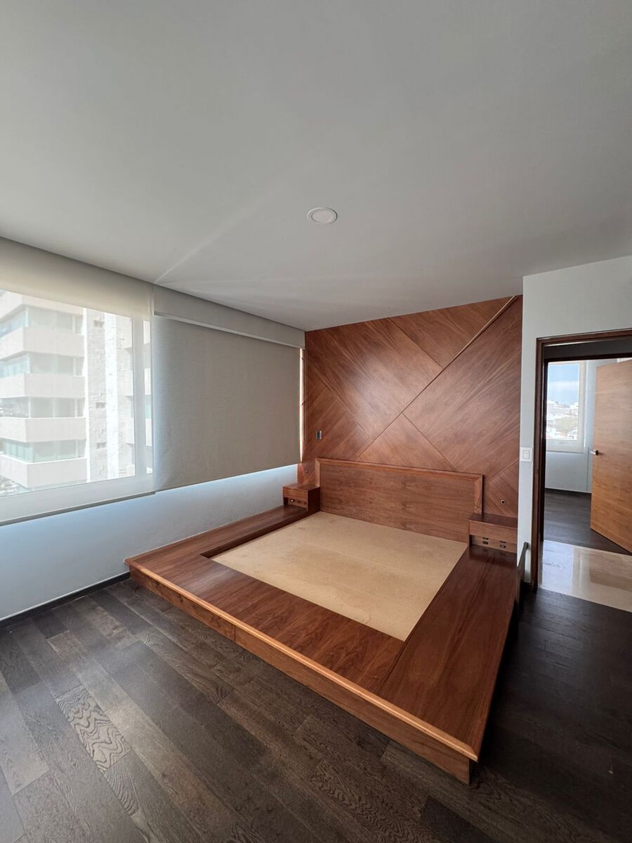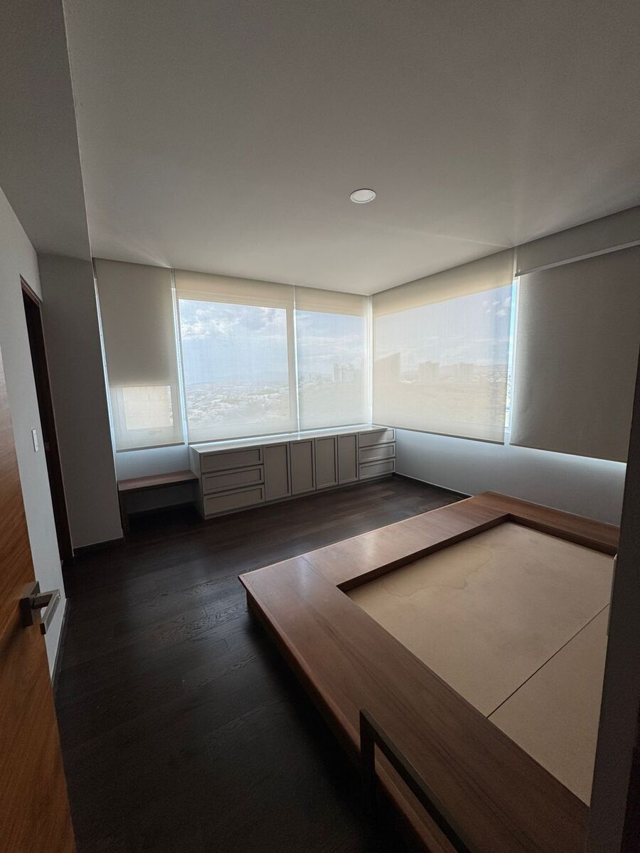 Recamara principal con vestidor amplio y baño completo. Cuenta con base king size, burós y cajonera