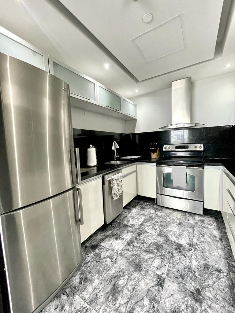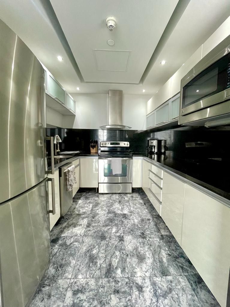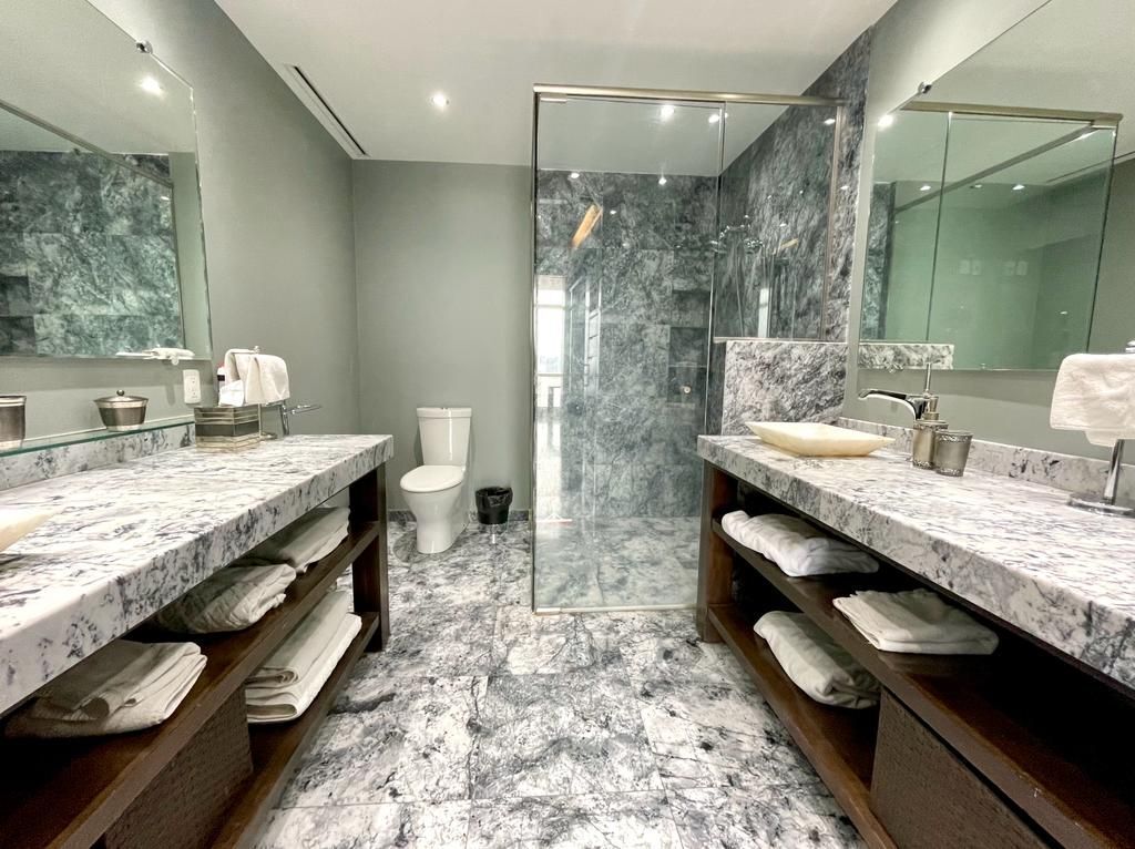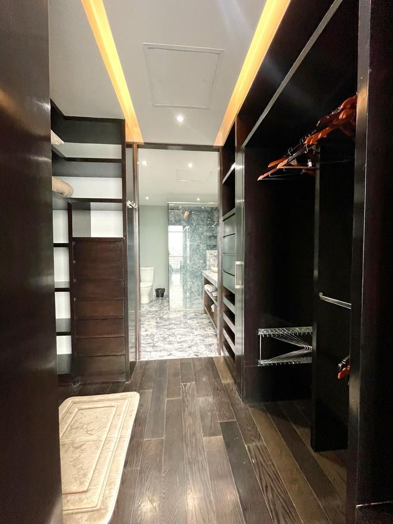El departamento cuenta con cortinas black out eléctricas y luces de alógeno que permiten manejar la intensidad de luz, aire acondicionado en todo el departamento.