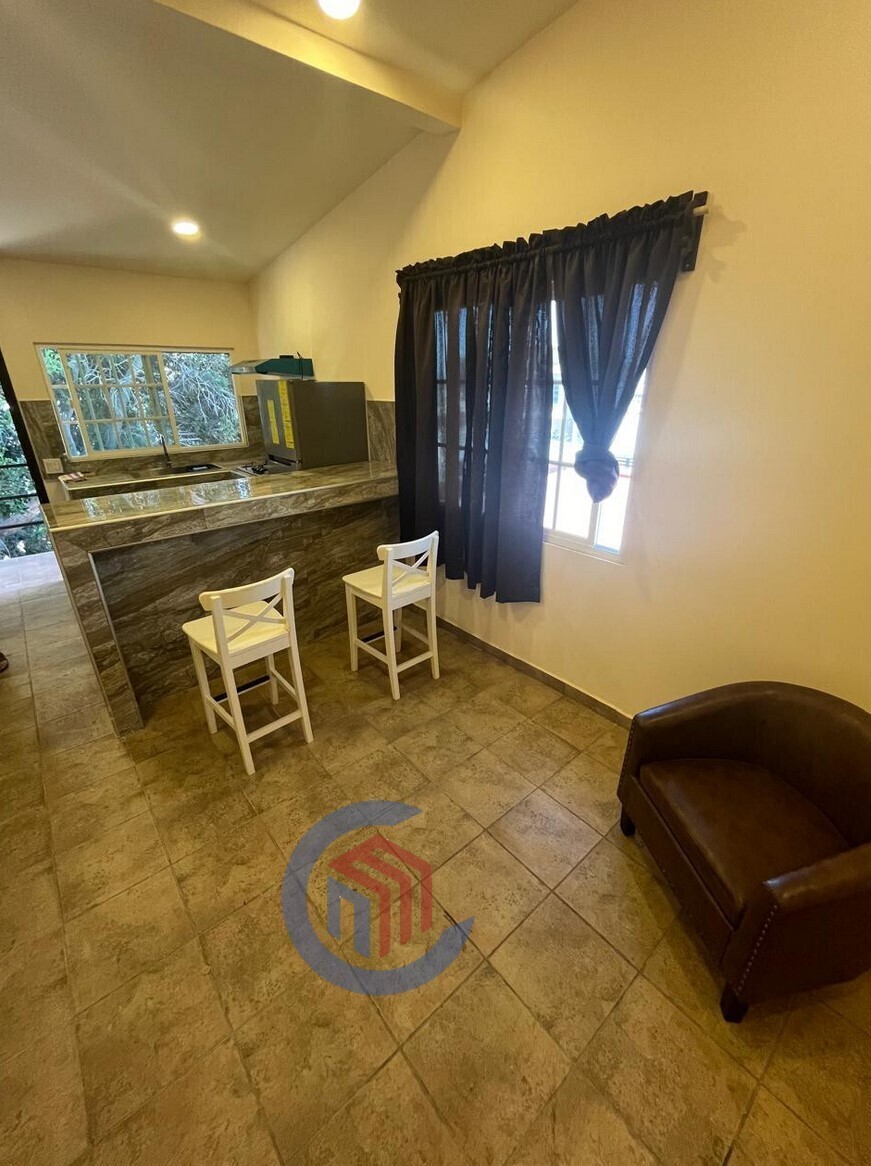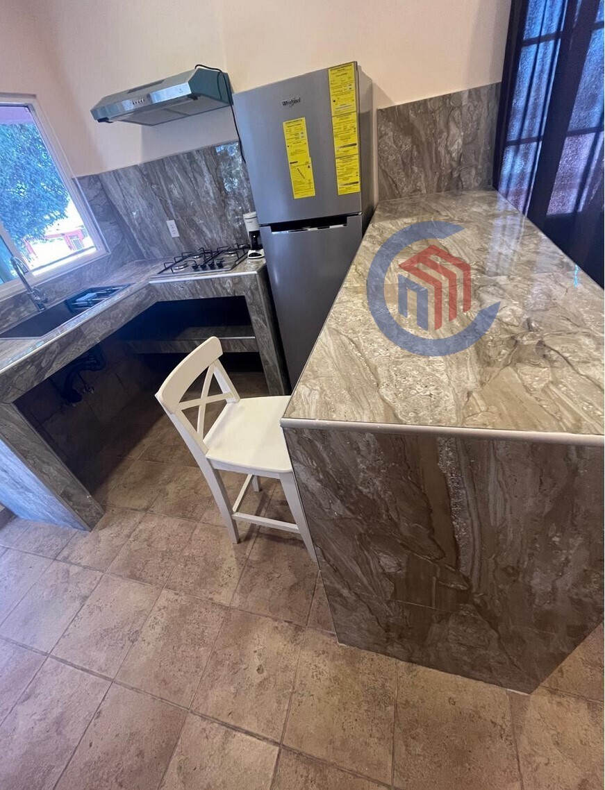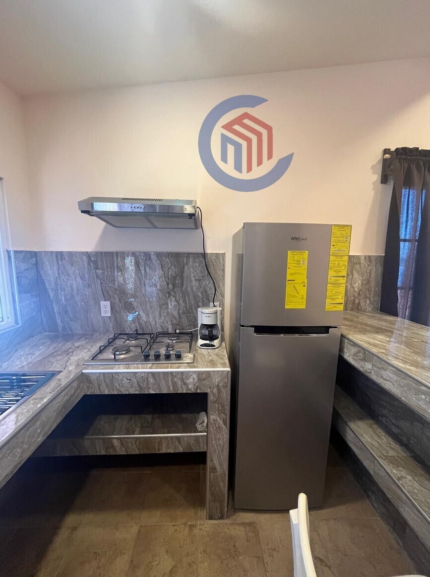Department with excellent location on the second floor, it has a kitchenette, stove grill, sink, refrigerator, bar for eating NEW, it has a couple of high stools for diners, on the other hand, it has 01 bedroom, space for a living room or lounge, with space for a closet, a full bathroom. Area for washing. (electric washer and dryer). With wide shelves for storage in the kitchen and bedroom and Television, mini-split refrigeration of 01 ton in the bedroom.