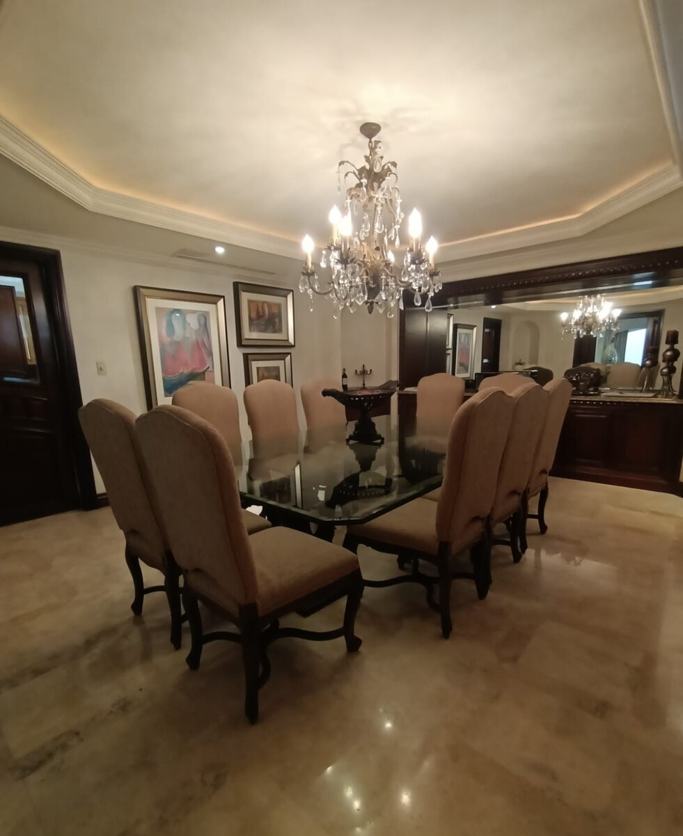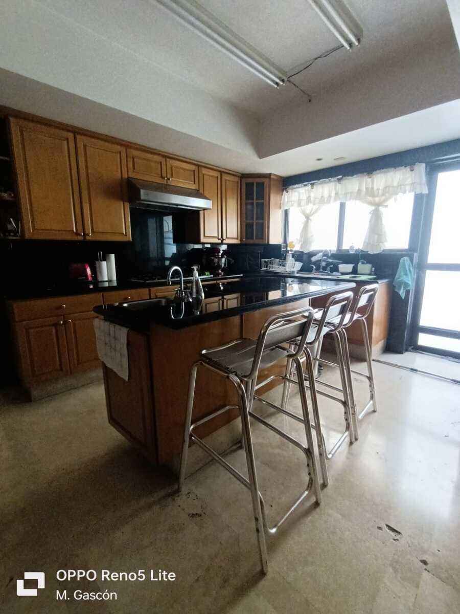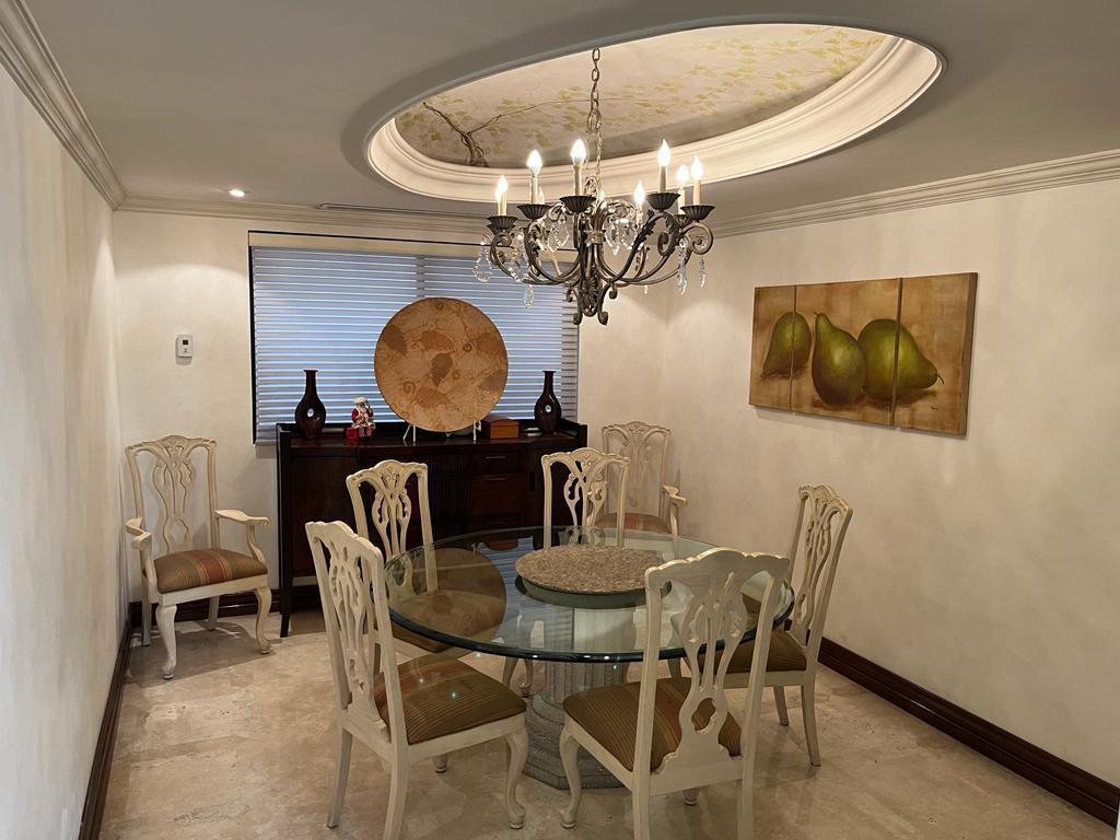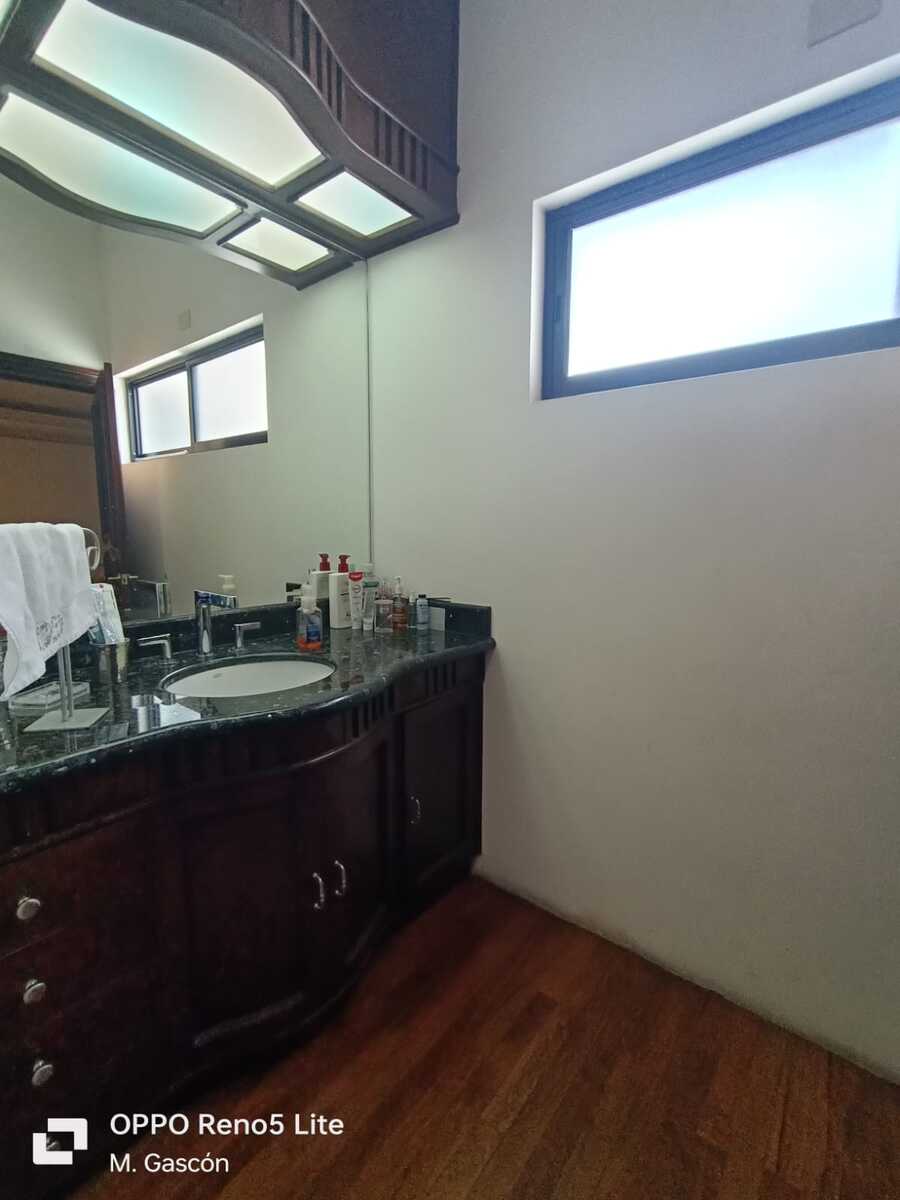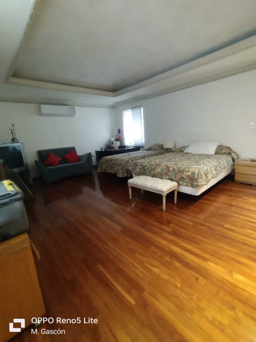 La planta baja cuenta con amplio recibidor, elegante sala con bar, comedor y antecomedor. La cocina integral es de granito y está equipada con aparatos Thermador, dos baños para visitas, cuarto de juegos con doble área una con mesa de juegos y bar, y la otra con sala y gran pantalla. La cochera tiene capacidad para tres autos, ahí mismo se encuentra el cuarto de servicio con baño. También cuenta con un cuarto de lavado y planchado con baño completo, área de tendido y dos bodegas.