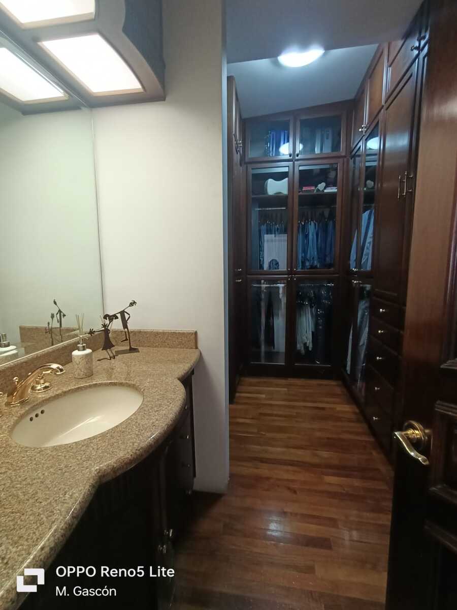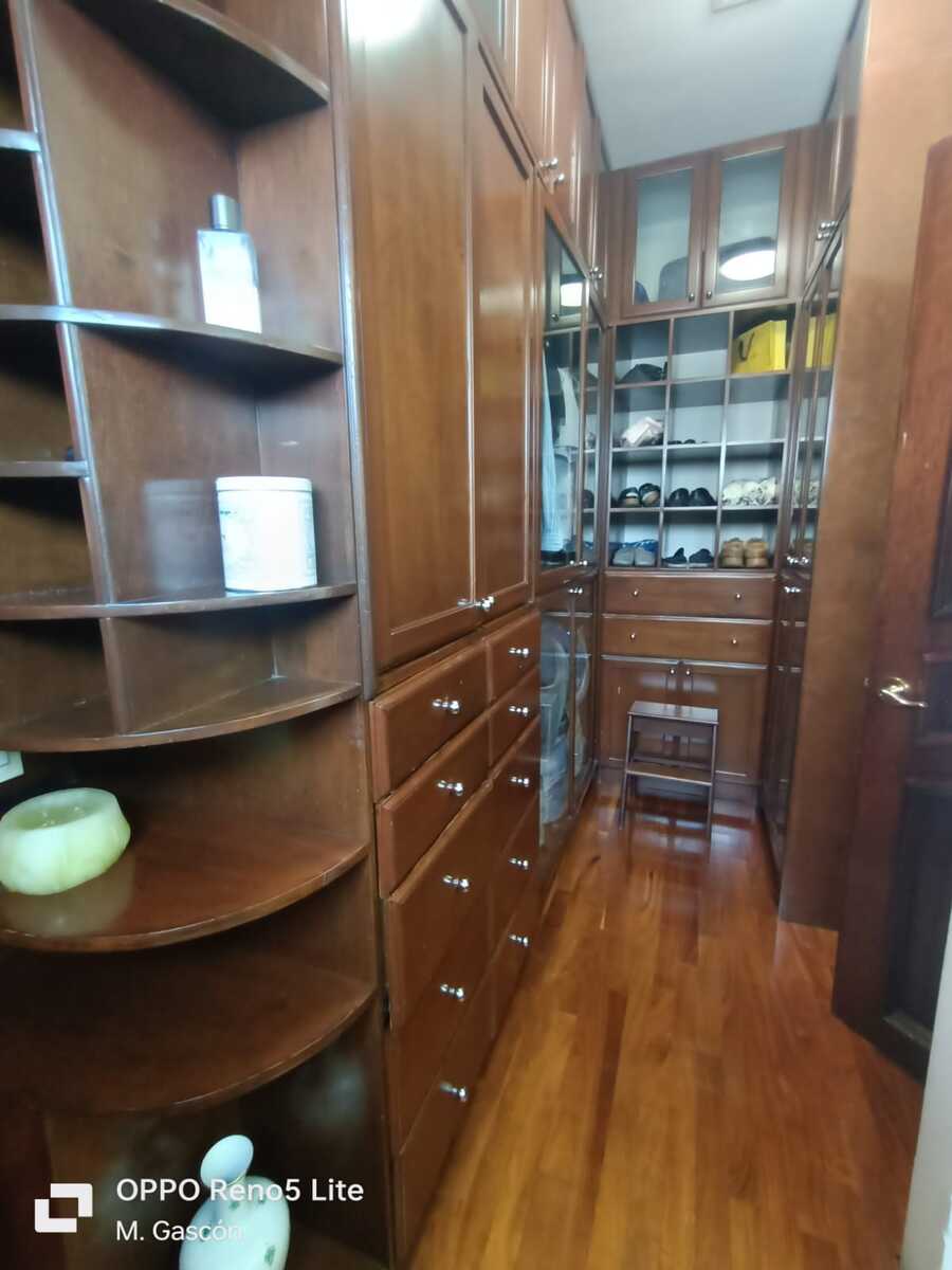 La planta alta alberga cuatro recamaras con vestidor y baño cada una, tres de las cuales tienen lavabos independientes. Todos los baños están revestidos de granito, gimnasio, holl de TV con closet. pantry y sink de limpieza, también cuenta con una una terraza.
