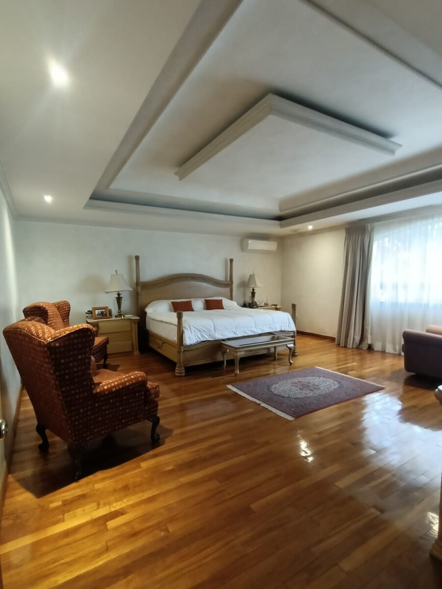 La casa cuenta con 6 climas, aire acondicionado seccionado calor/frio, ductos en toda la casa, pisos de mármol y duela, molduras hechas a mano, plafones de diseño y puertas, bar y muebles empotrados de madera de caoba, diseñados por la reconocida diseñadora Nora Barrera (Casas del TEC). También cuenta con alarma con infrarrojos.