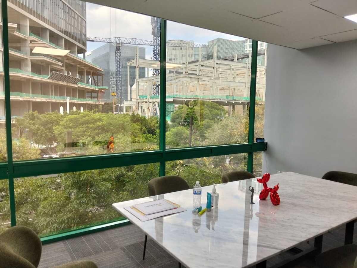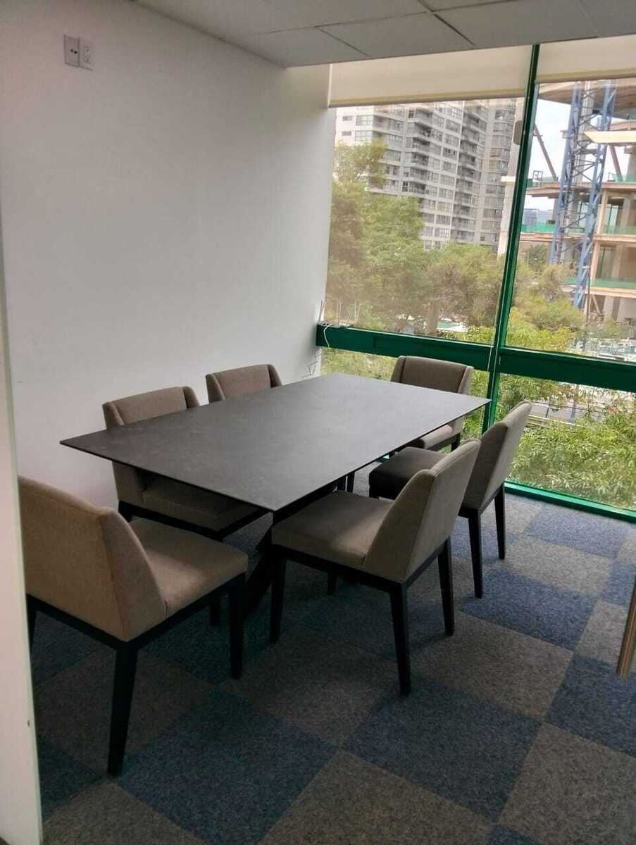 Rental of furnished office in a four-level corporate building that has amenities such as air conditioning, 2 elevators to facilitate access, a roof garden that offers a perfect space for relaxation, 24-hour security with police and CCTV.