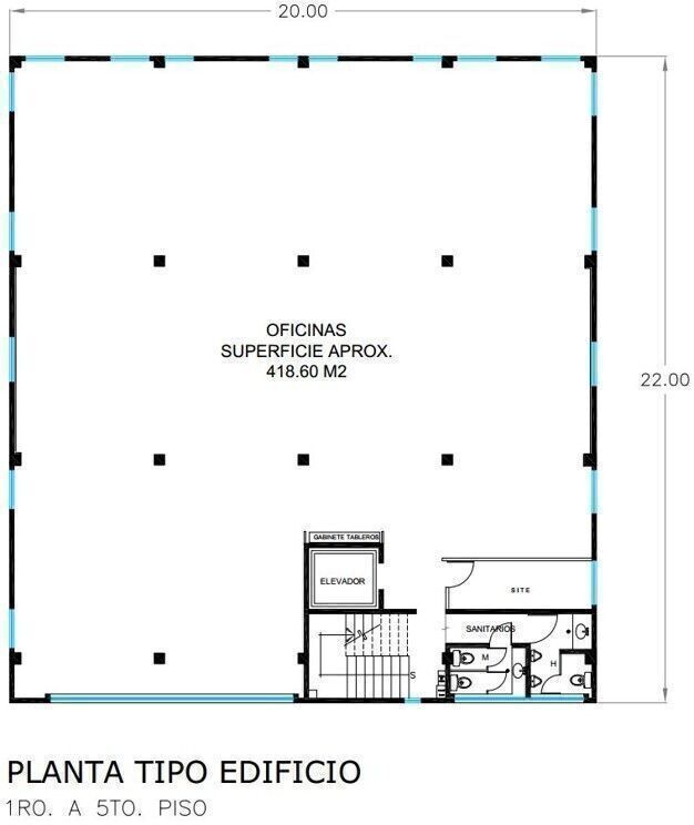 *5 plantas tipo con superficie de 418.60 M2 c/u.