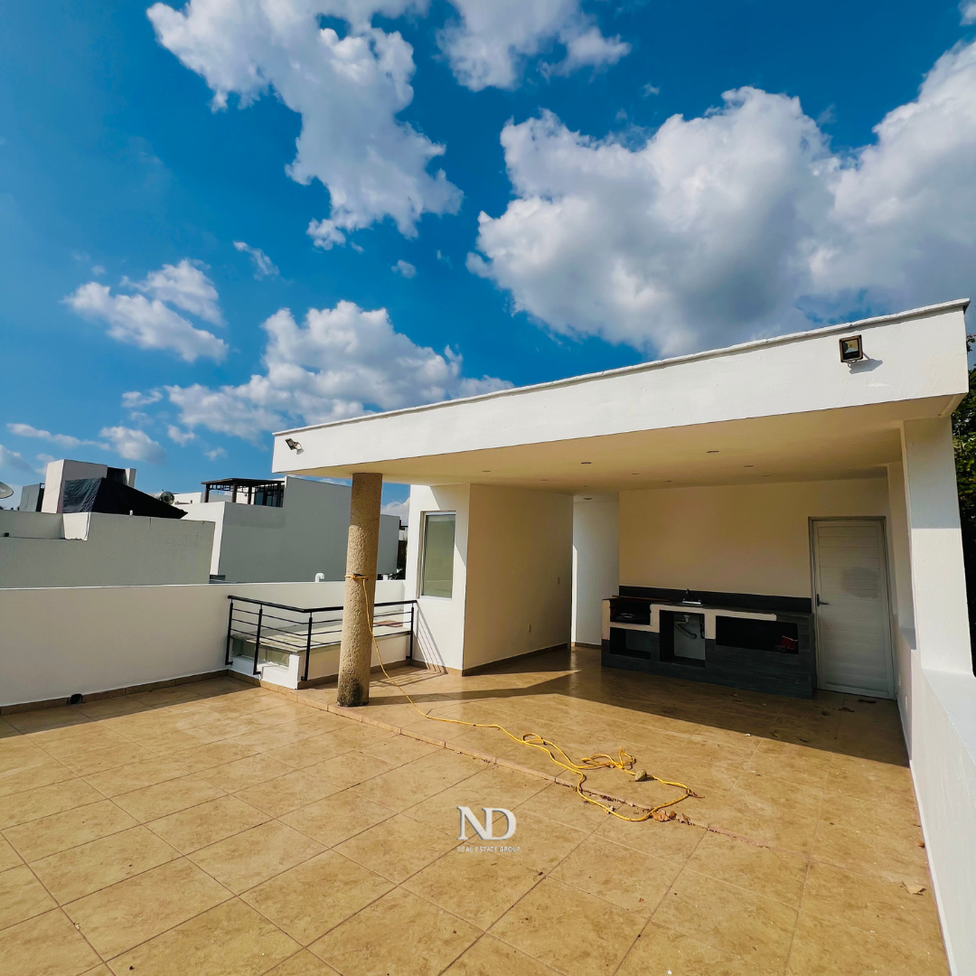 Propiedad amplia con 2 cajones de estacionamiento, 3 recamaras, 3 baños completos y un rooftop que destaca para apreciar la bella vista de este sector residencial y con amplios espacios verdes.