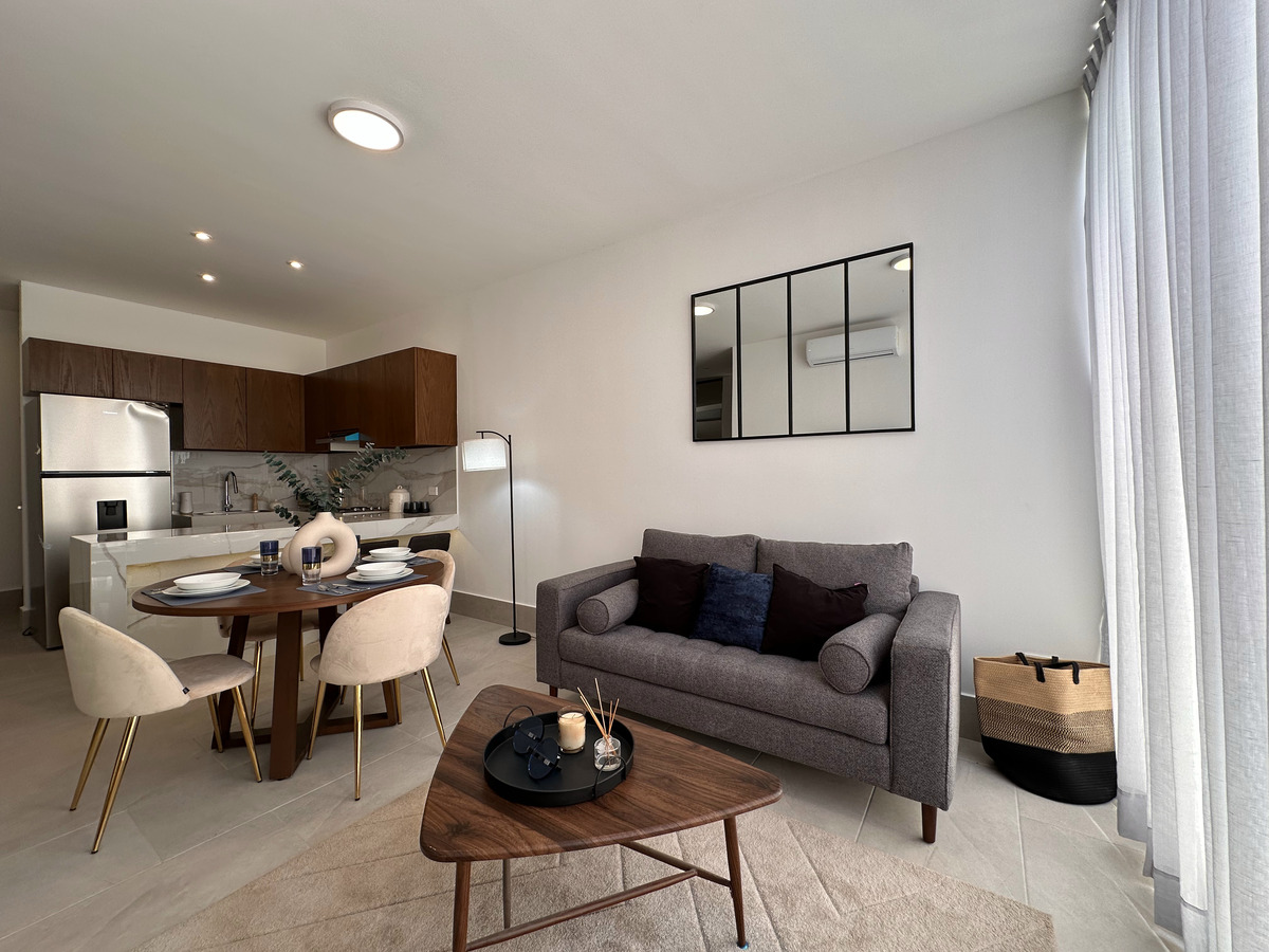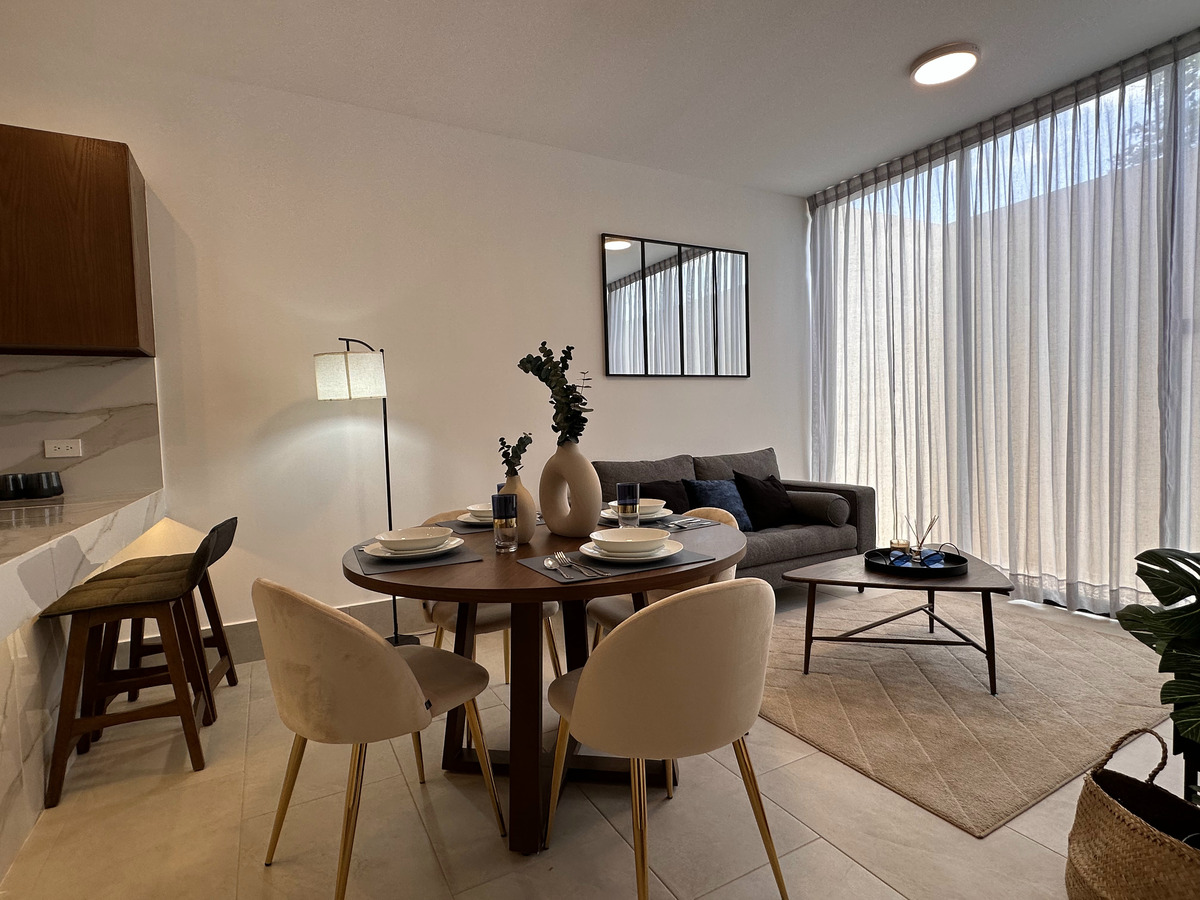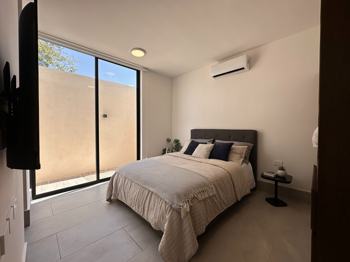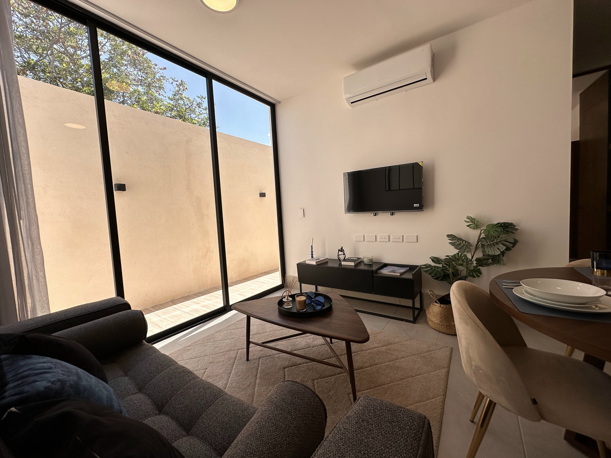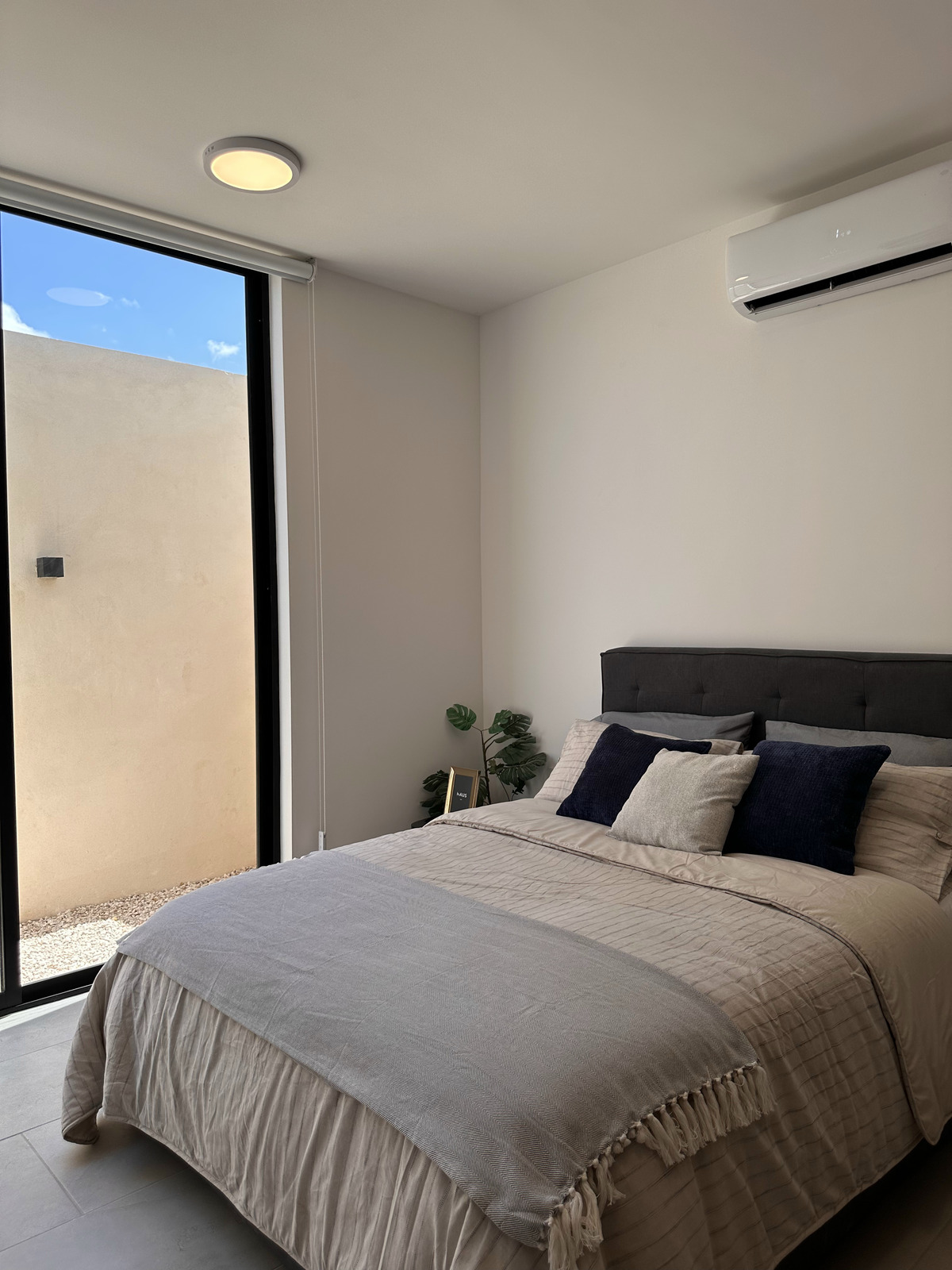Close to the La Isla shopping center, Seven Eleven, the beaches of Progreso, and the most prestigious universities and colleges.Renta y estrena bello departamento en Temozón Norte frente al desarrollo Las Fincas. Equipado. Incluye mantenimiento.