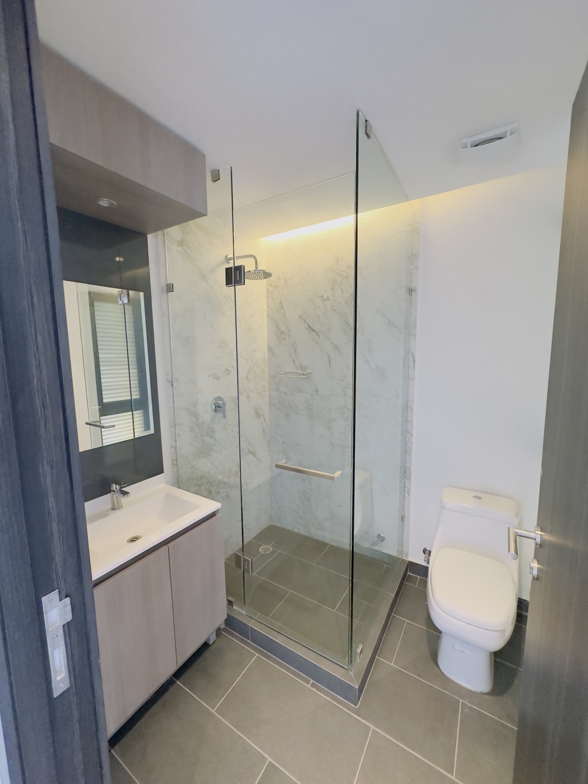 • 2 bedrooms (master on the corner with private bathroom and open closet)