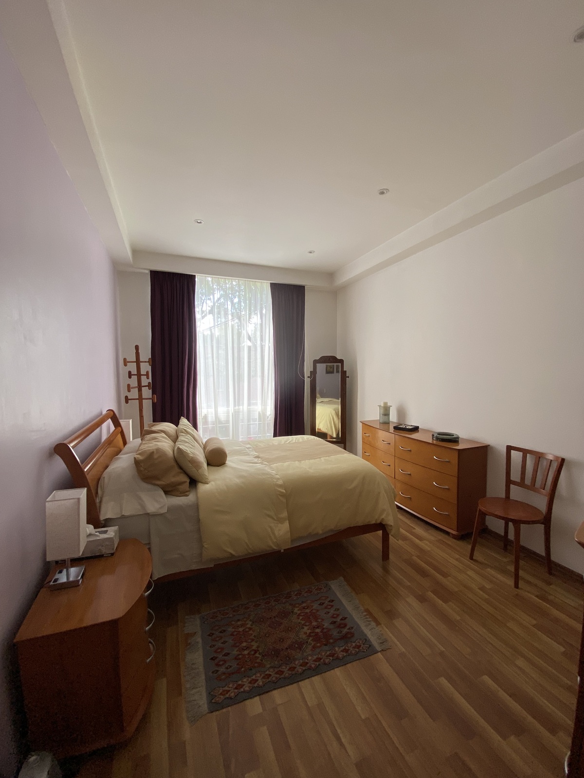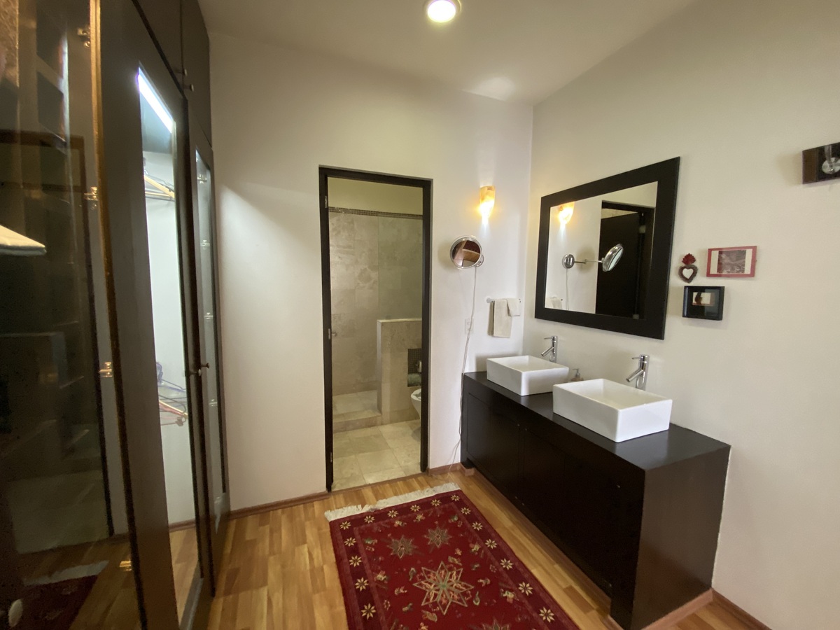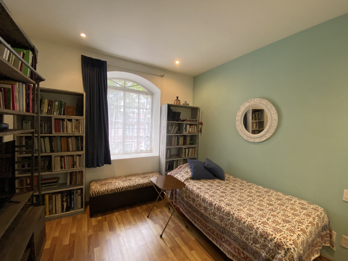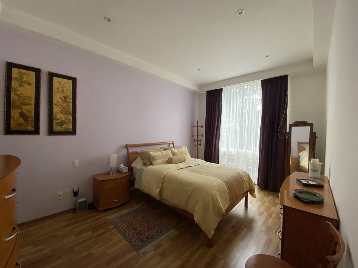 For rent, furnished apartment located in the emblematic Roma Norte neighborhood, characterized by its classic architecture. This apartment is part of an old house that was renovated to create a small development of eight apartments. The architectural adaptation is reflected in the spacious areas and high ceilings of the apartment, making it a bright and cozy space. The master bedroom has a full bathroom and a walk-in closet, and the second bedroom has a large closet.