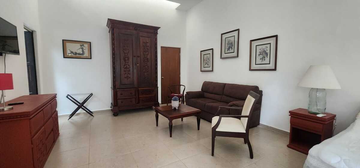 -1 amplia Recámara con hermoso mobiliario: Cama King, escritorio, ropero, pantalla TV, sofa