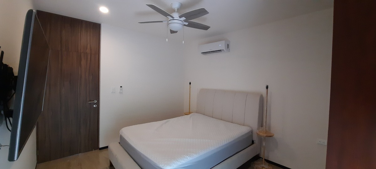 -Aire acondicionado, ventiladores en sala/comedor y recámaras.