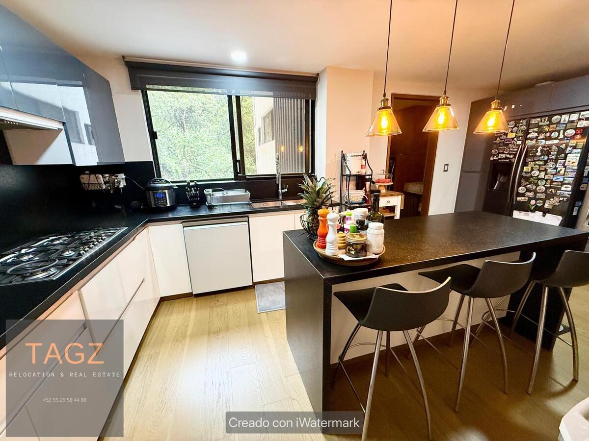 Mortgage credit is accepted.Oportunidad! Venta Moderno Departamento recién remodelado totalmente, practica ubicación en Bosques de las Lomas y a 2 minutos de Santa Fe . Acabados de lujo, con pisos de madera en todo el departamento y baño y cocina con placas de mármol.