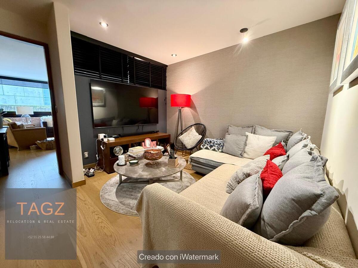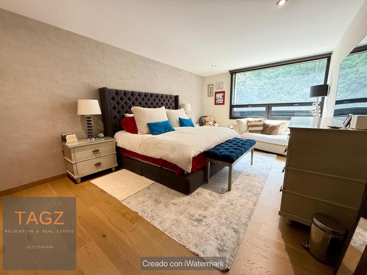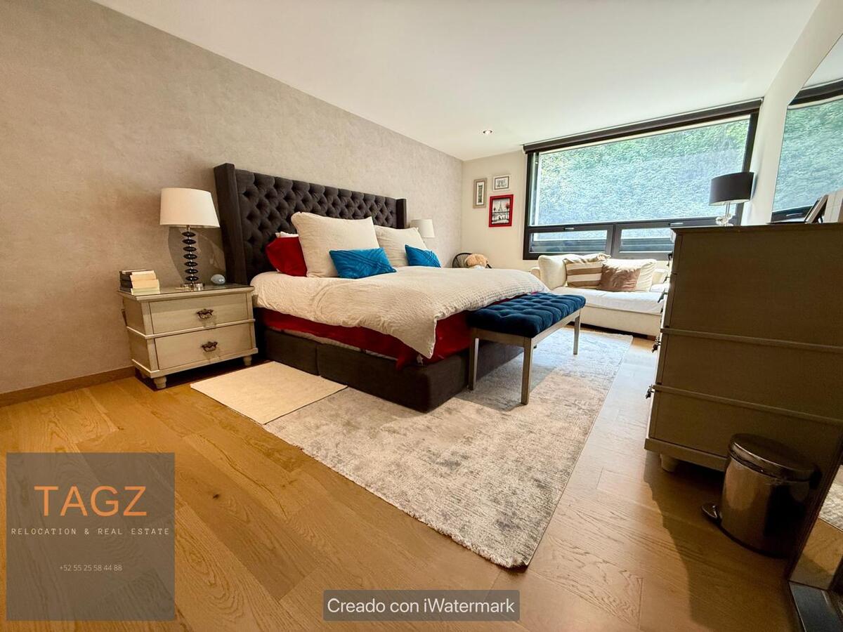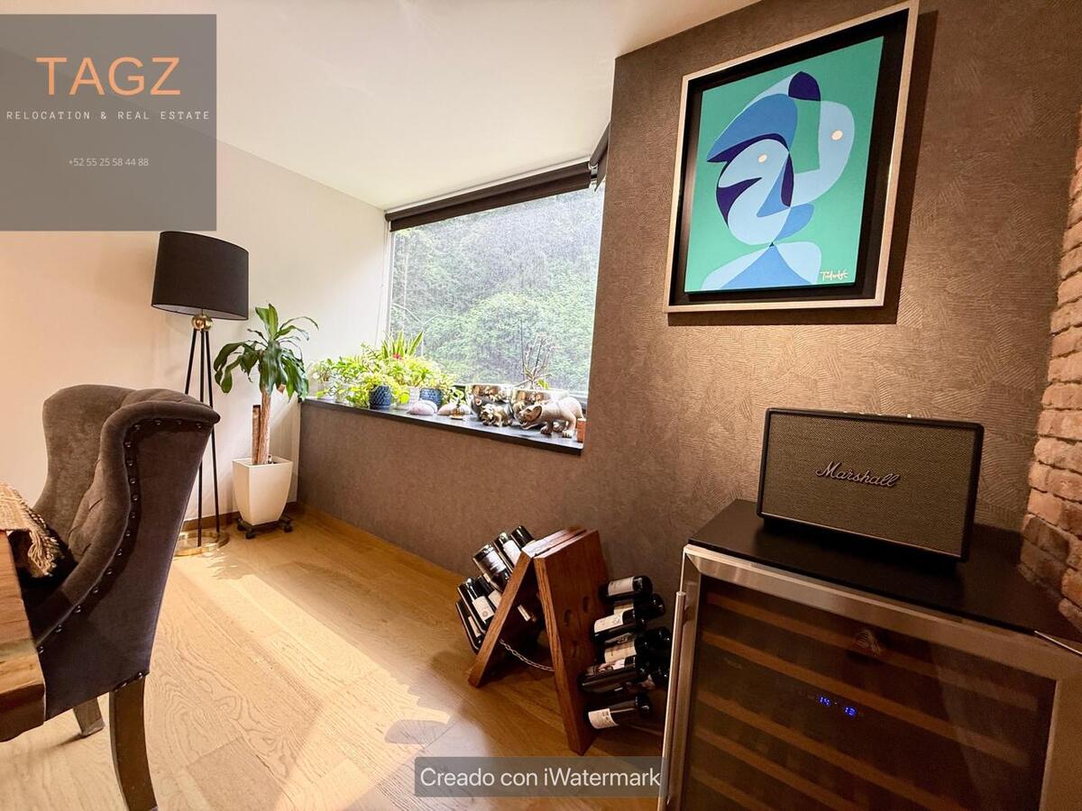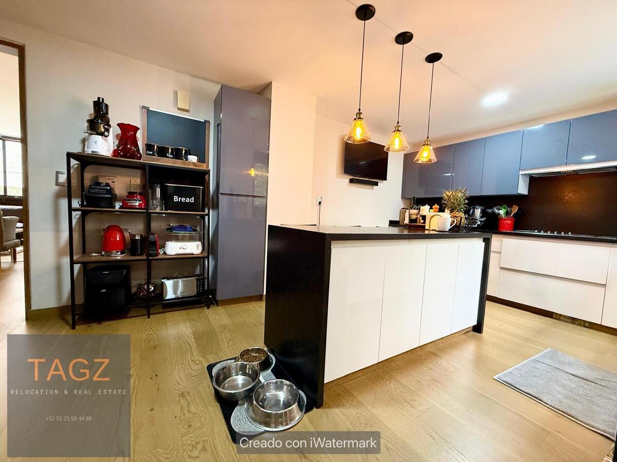Opportunity! Sale of a modern fully remodeled apartment, conveniently located in Bosques de las Lomas and just 2 minutes from Santa Fe. Luxury finishes, with wooden floors throughout the apartment and bathroom and kitchen with marble slabs.