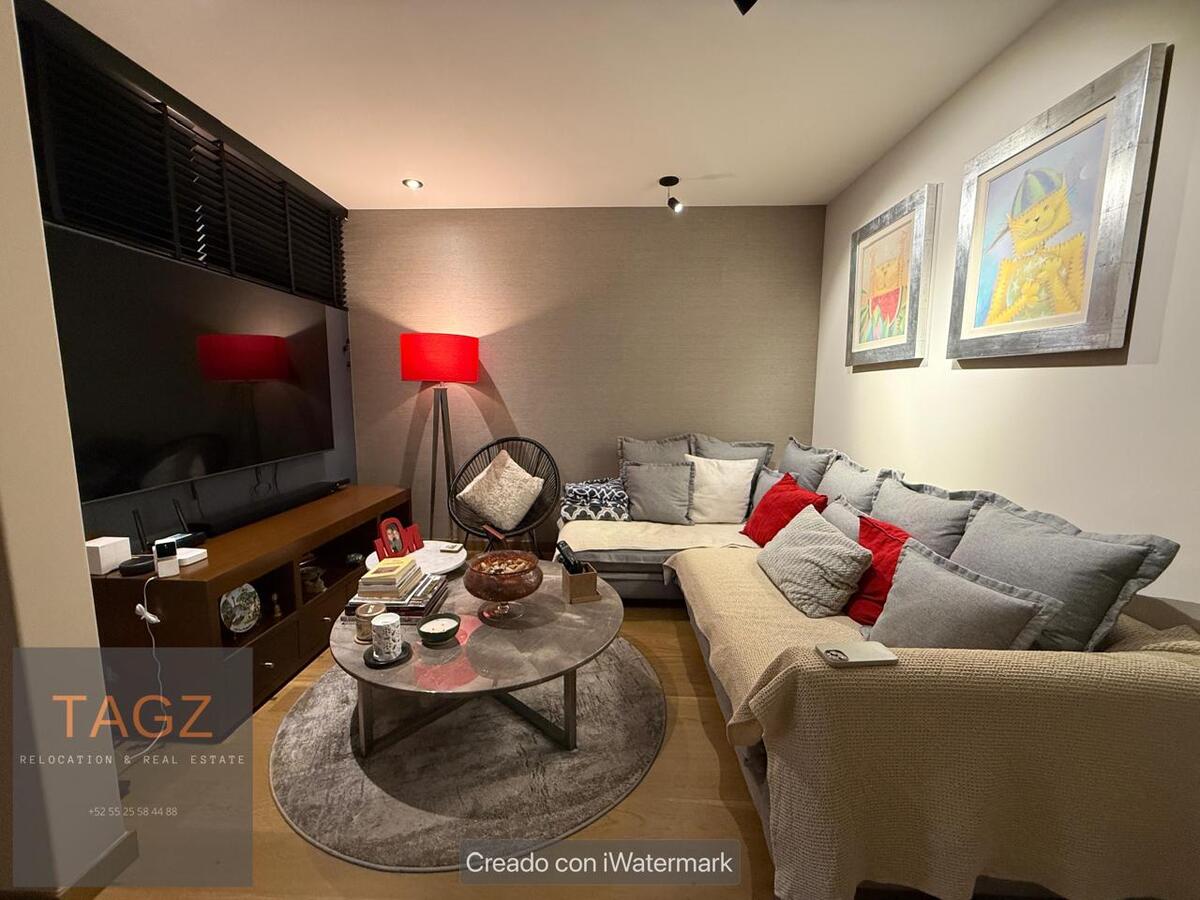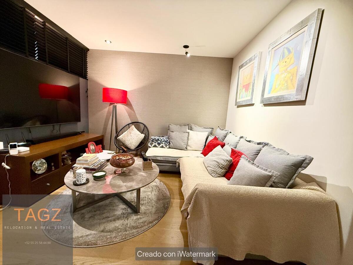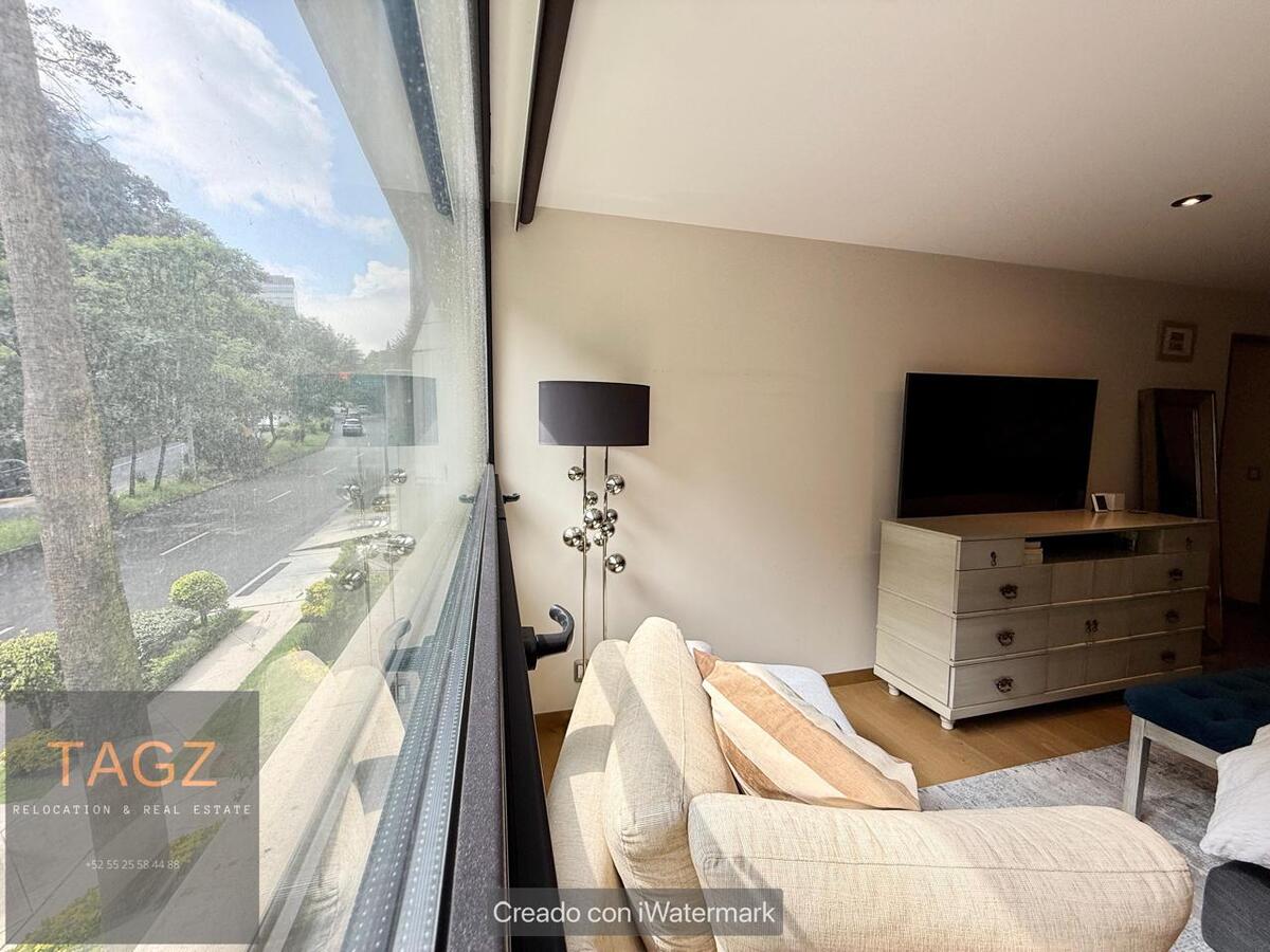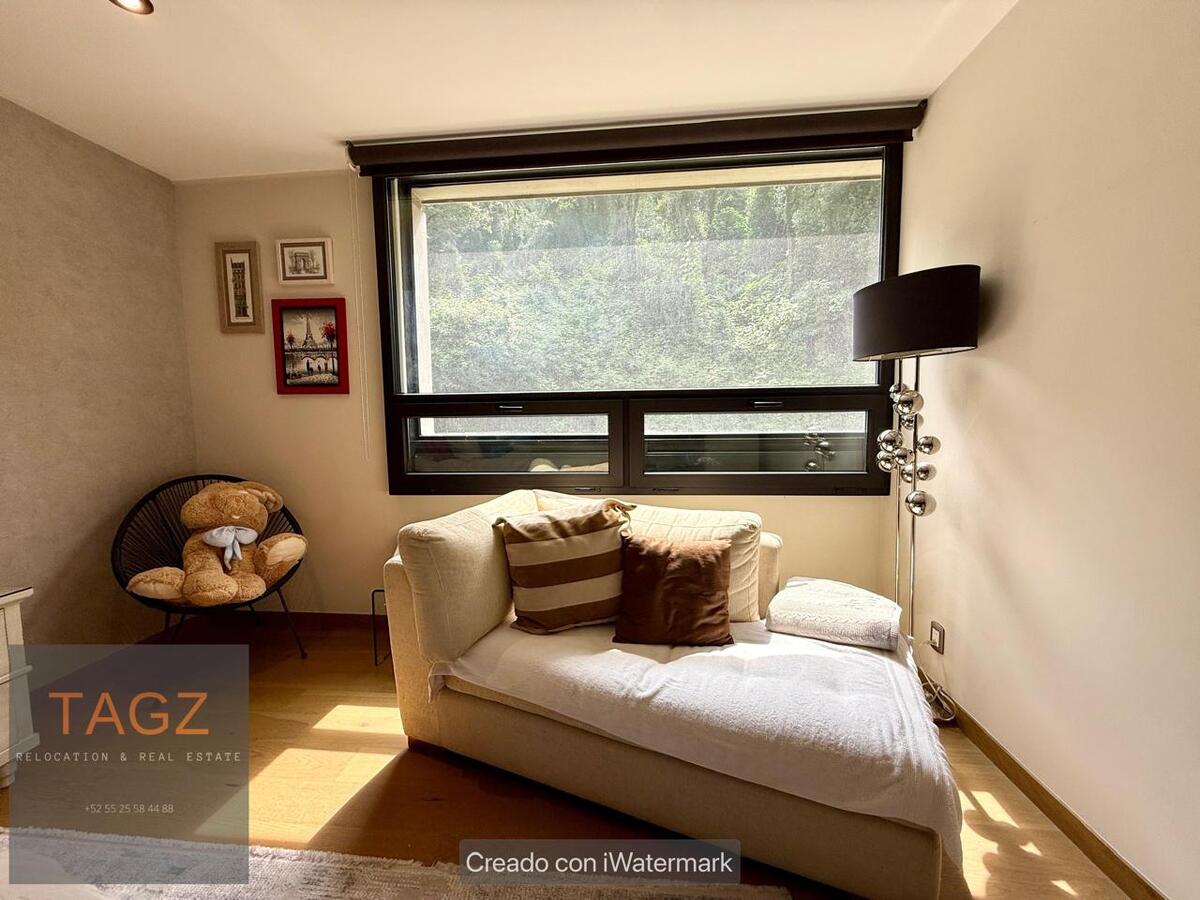 Opportunity! Sale of a modern fully remodeled apartment, conveniently located in Bosques de las Lomas and just 2 minutes from Santa Fe. Luxury finishes, with wooden floors throughout the apartment and bathroom and kitchen with marble slabs.