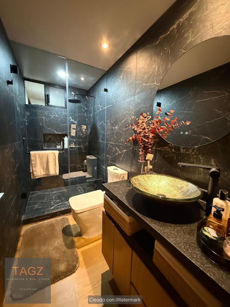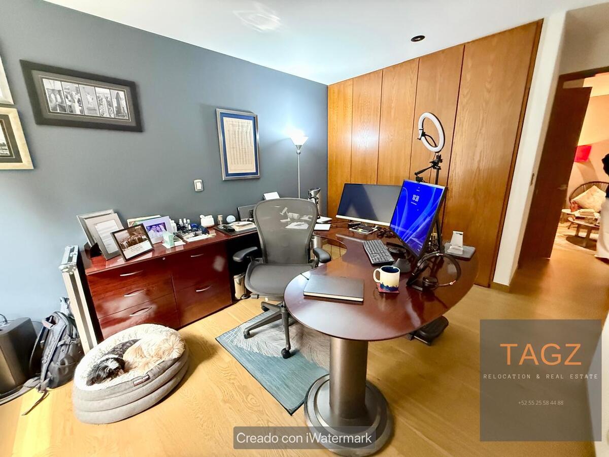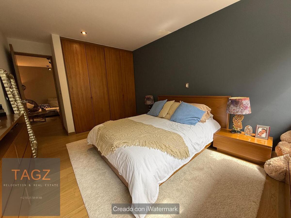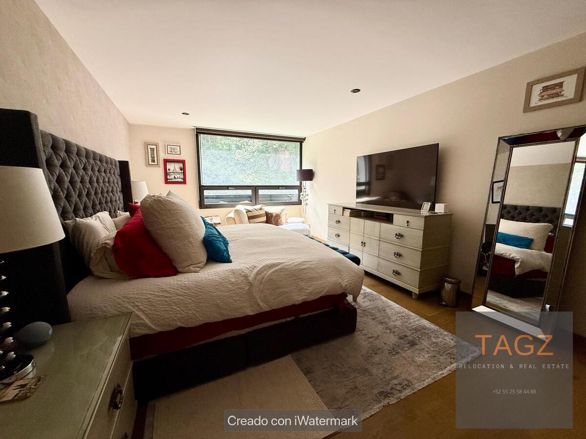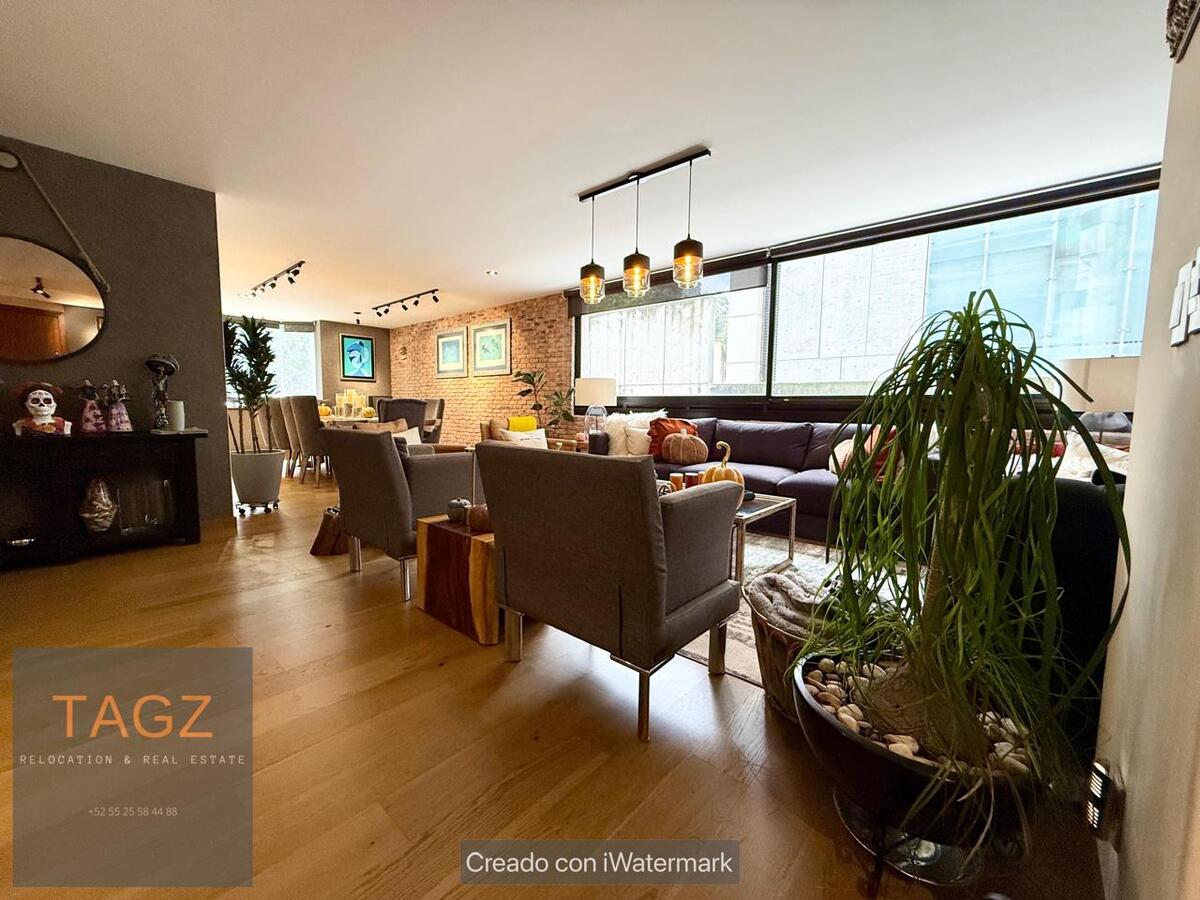Opportunity! Sale of a modern fully remodeled apartment, conveniently located in Bosques de las Lomas and just 2 minutes from Santa Fe. Luxury finishes, with wooden floors throughout the apartment and bathroom and kitchen with marble slabs.