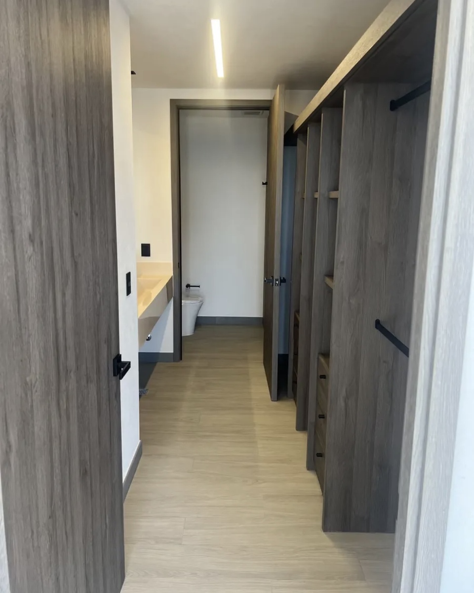 Cuenta con 91m2 distribuidos en sala-comedor, cocina abierta equipada con horno convencional y microondas, barra de cocina, área de lavado con lavado, 2 recámaras (la principal con walk-in closet y baño integrado) y un segundo baño completo para la segunda recámara y visitas. Además de contar con 2 lugares de estacionamiento y una bodega de 3.78m2.