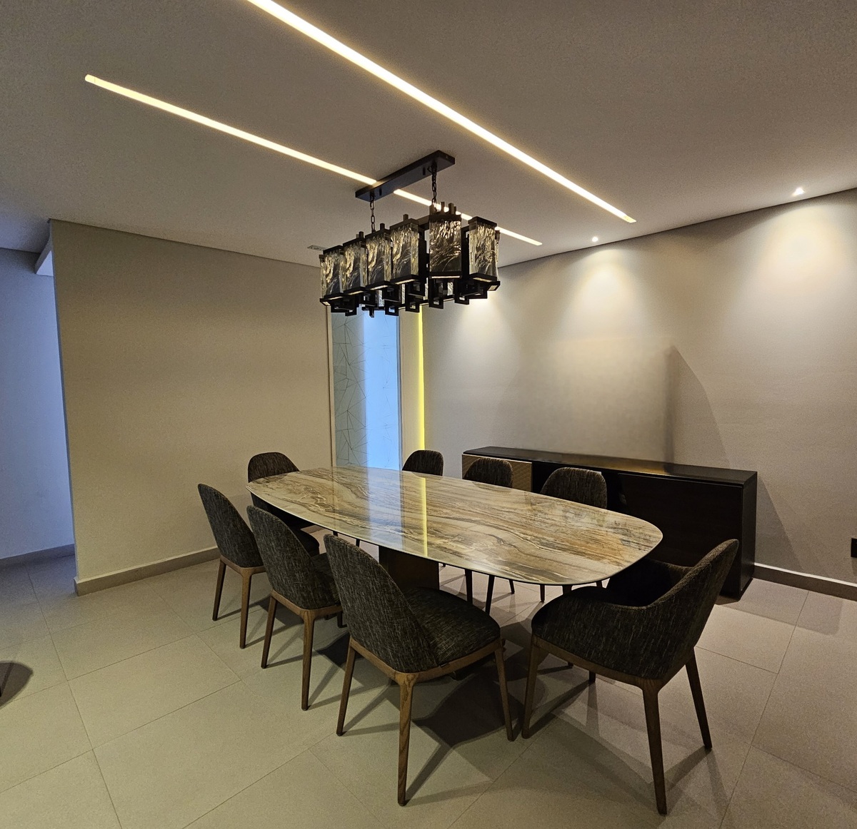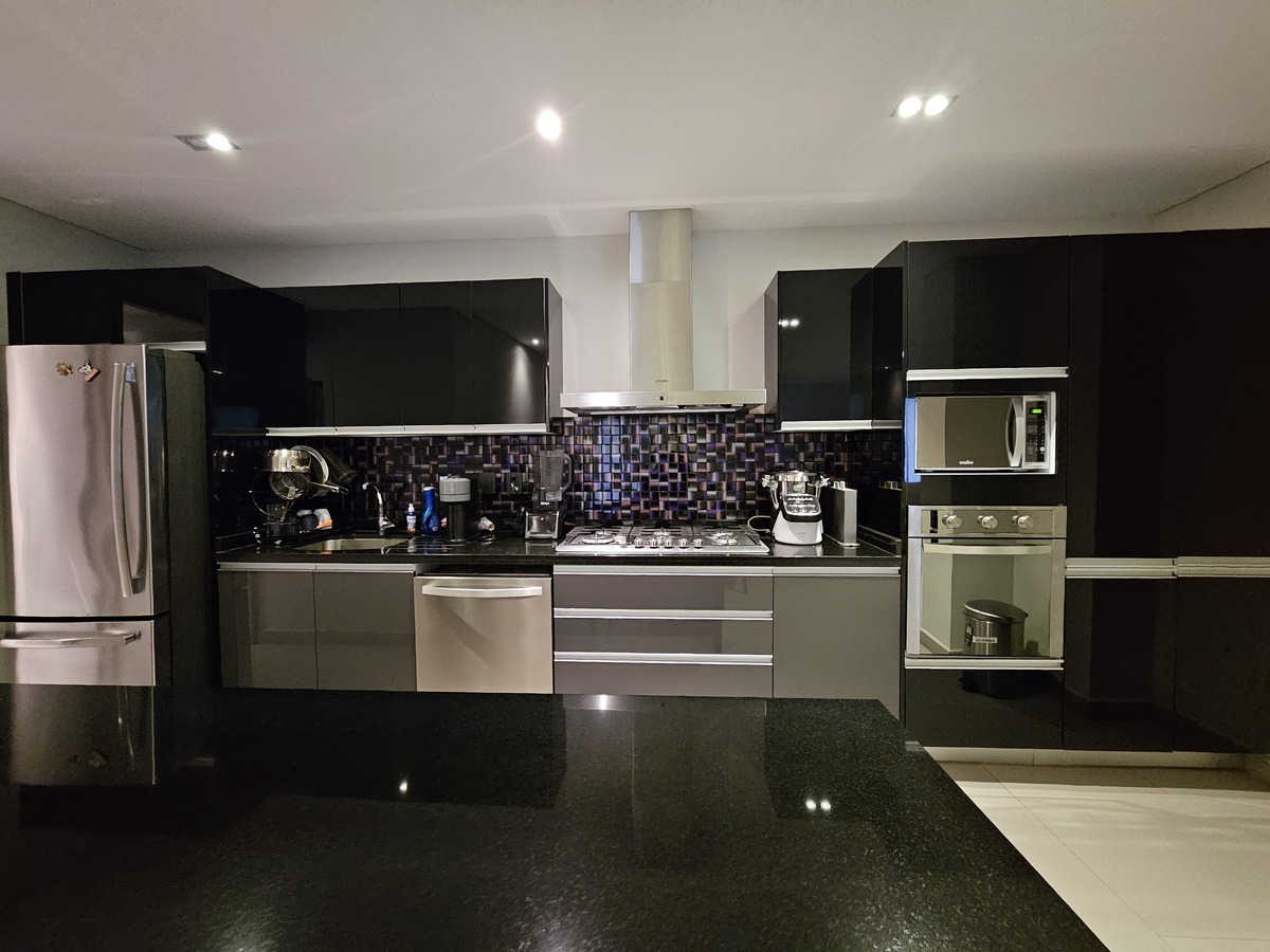 Entras a un recibidor que te lleva a un family y a la sala comedor con cocina abierta. Barra desayunador y cubierta de granito negro.