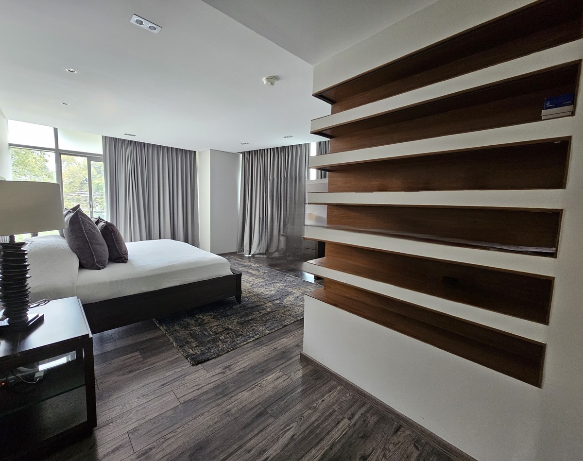 La recámara principal tiene un vestidor amplio y salida a una terraza que la rodea.