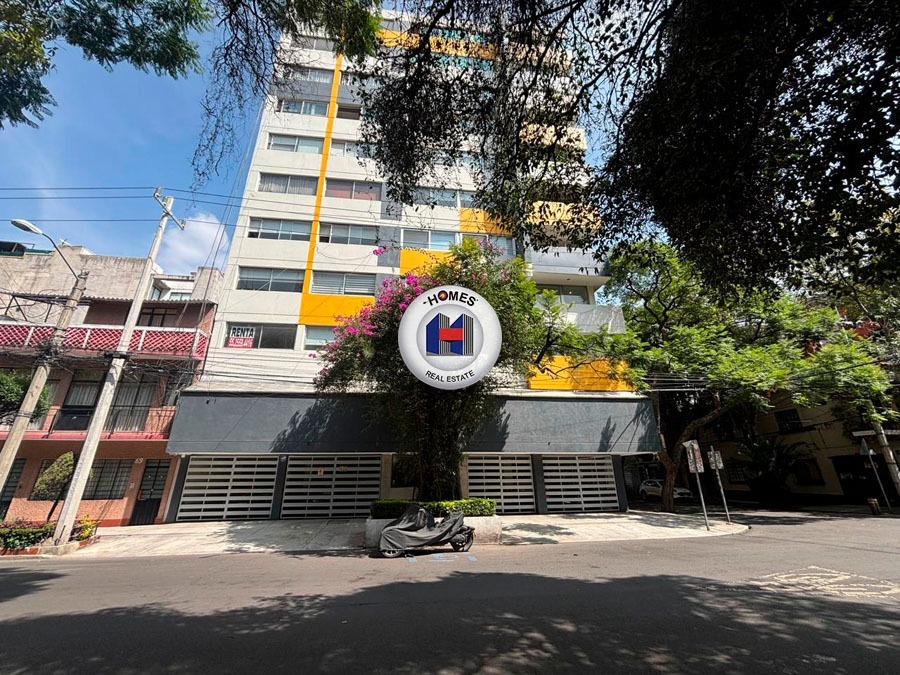 Exterior apartment for rent in the Hipódromo Condesa neighborhood, Mexico City (CDMX), in excellent condition and with great natural lighting. Located in a building with 24-hour security, an elevator, and only three apartments per floor.