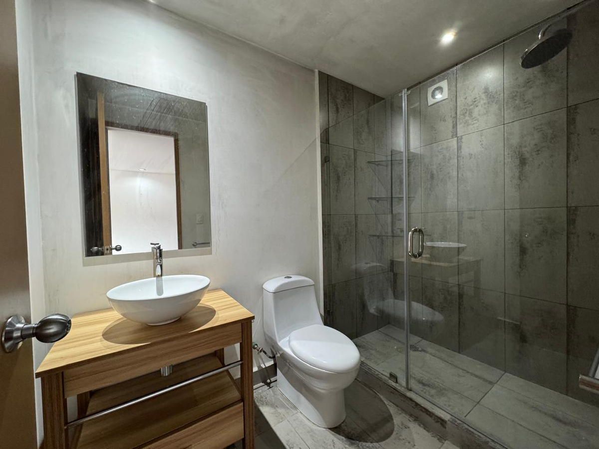 Disfruta de un ambiente tranquilo y moderno en este departamento de 98 m², con 2 recámaras, la principal con baño privado y la secundaria que comparte baño con el área social. Cuenta con cocina abierta con cubierta de granito, espacio para lavavajillas y clóset con área para centro de lavado.