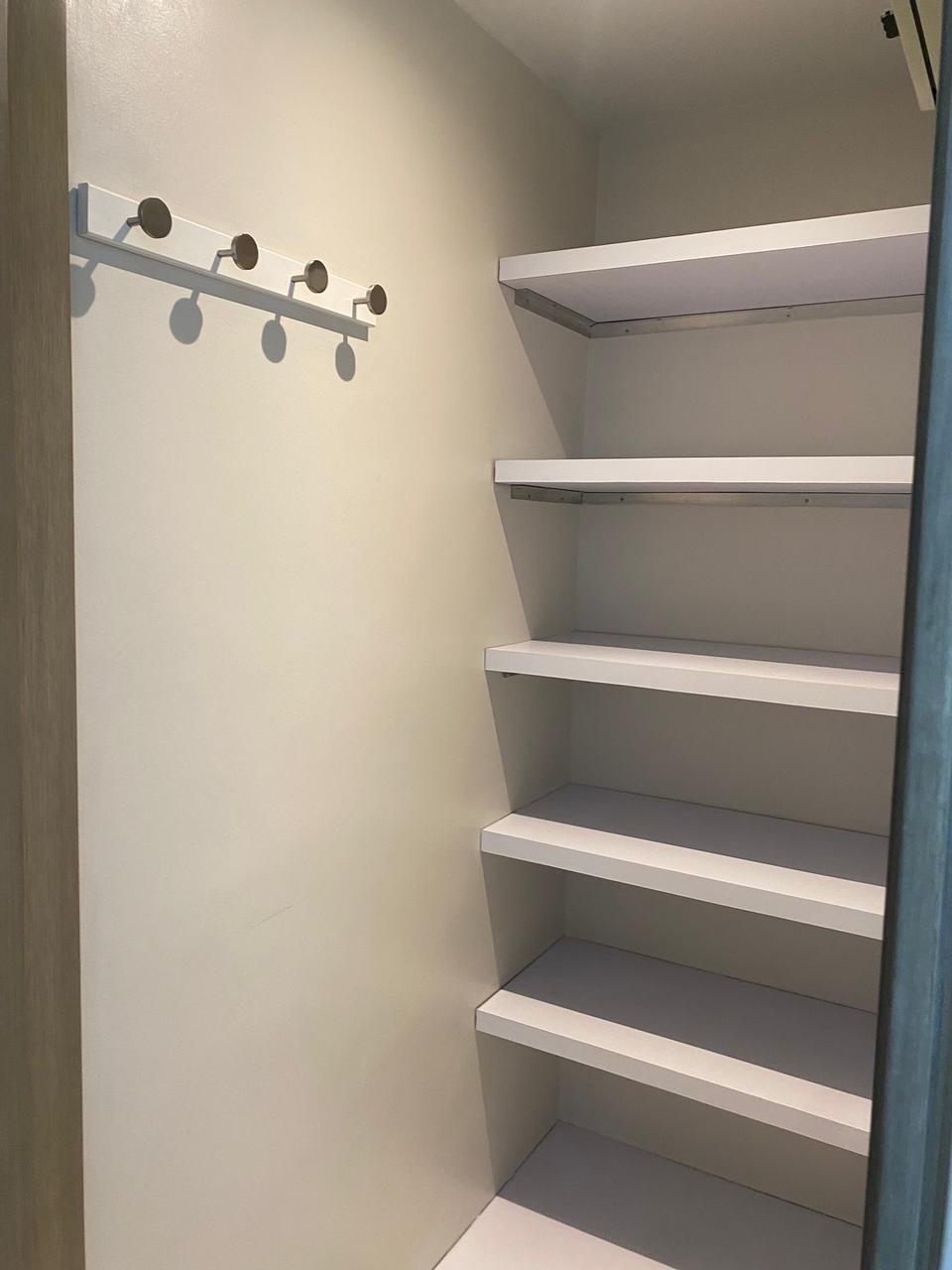 Bedroom: Space for a king bed, closet, mini-split (1 ton), ceiling fan.