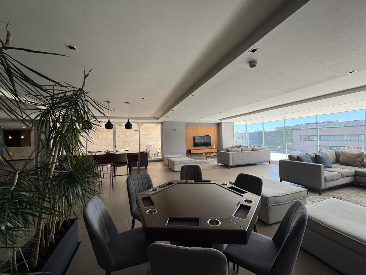 El desarrollo ofrece amenidades de primer nivel: gimnasio, alberca, jacuzzi, rooftop con asadores y mesas, salón de fiestas, sala con TV y mesa para juegos, además de área de co-working.
