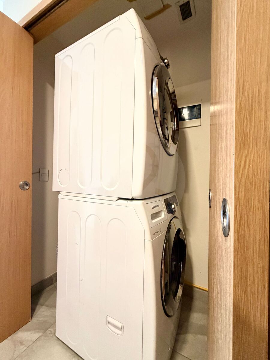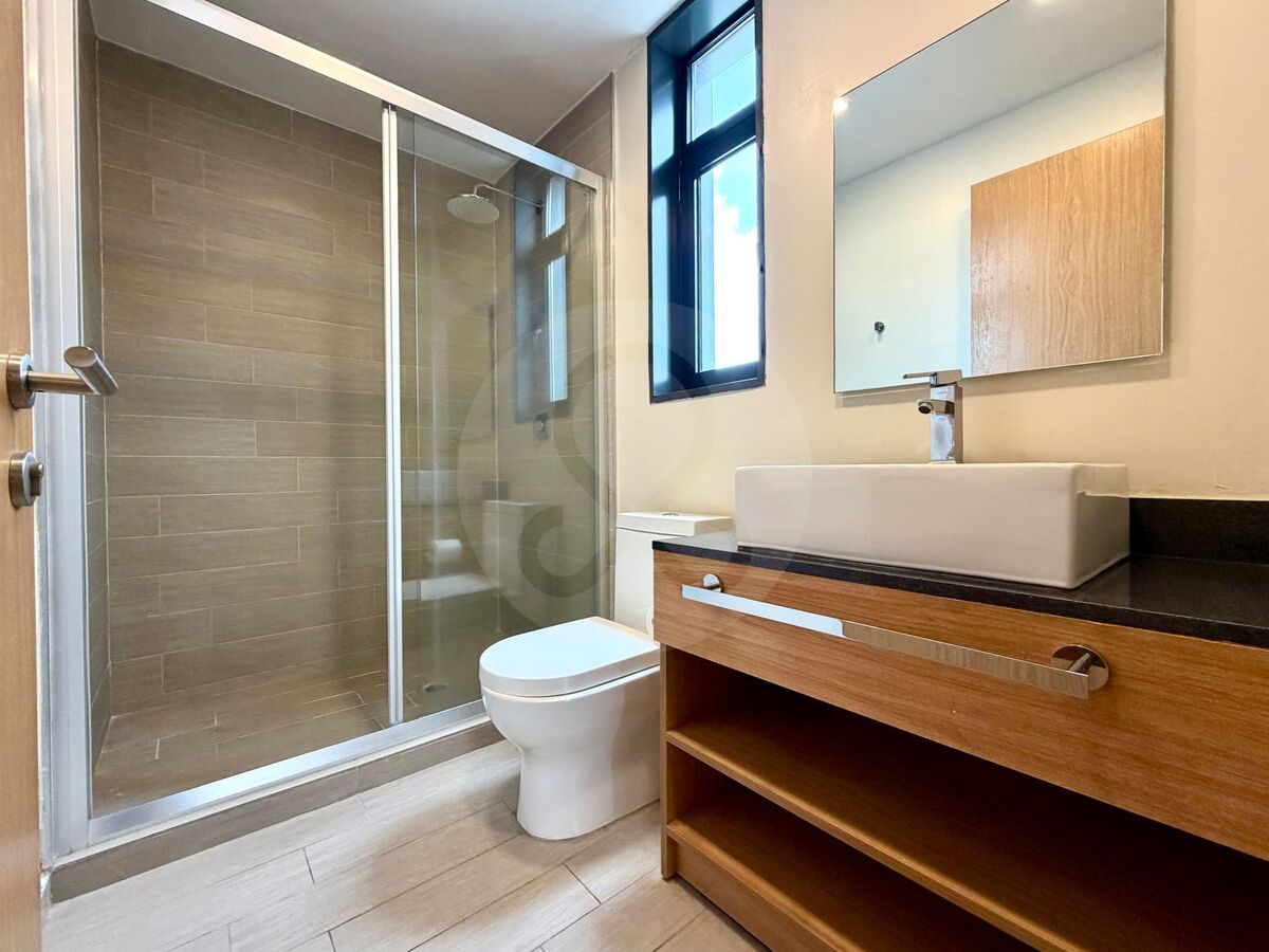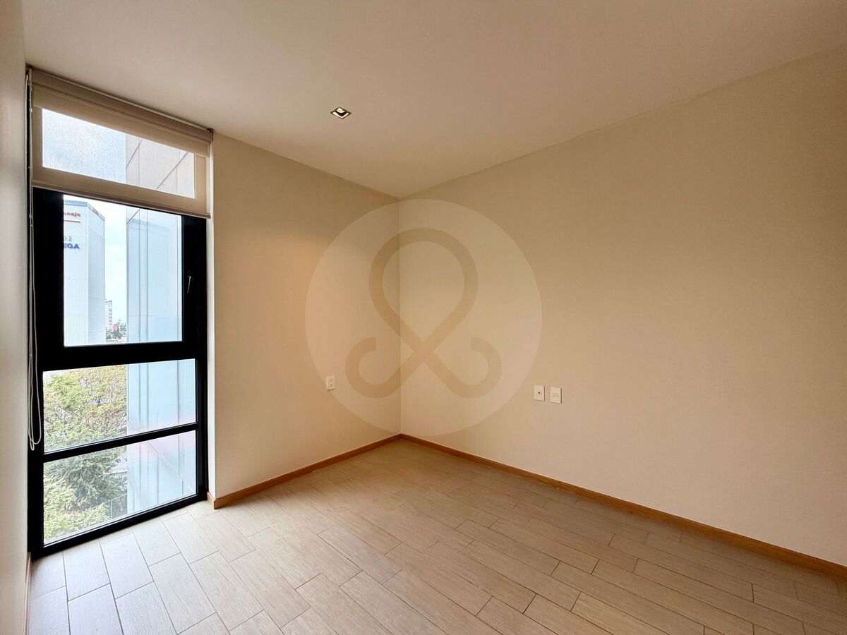 Se encuentra en un quinto piso, y cuenta con 83m2 habitables distribuidos en: Estancia sala comedor, cocina con barra de granito, espacio de lavandería, dos recámaras, la principal con baño y walking clóset. Un segundo baño completo.