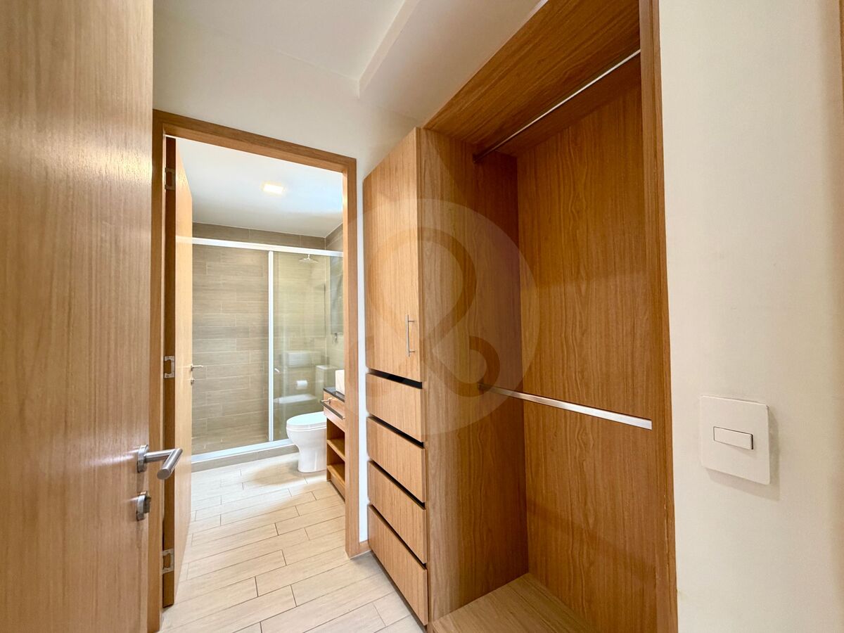 It is located on the fifth floor and has 83m2 of living space distributed in: Living-dining room, kitchen with granite bar, laundry space, two bedrooms, the main one with bathroom and walk-in closet. A second full bathroom.