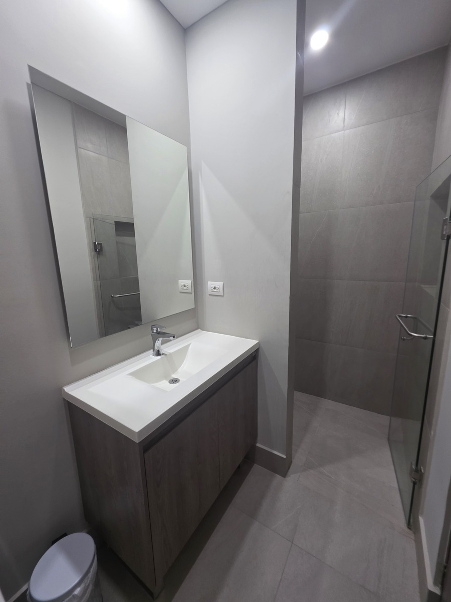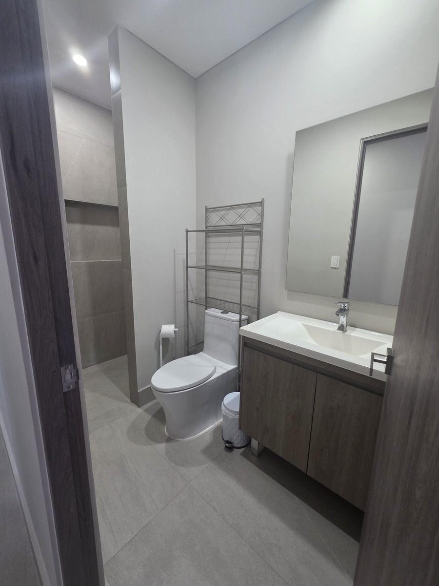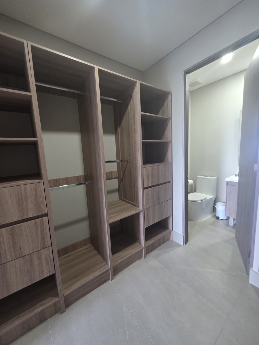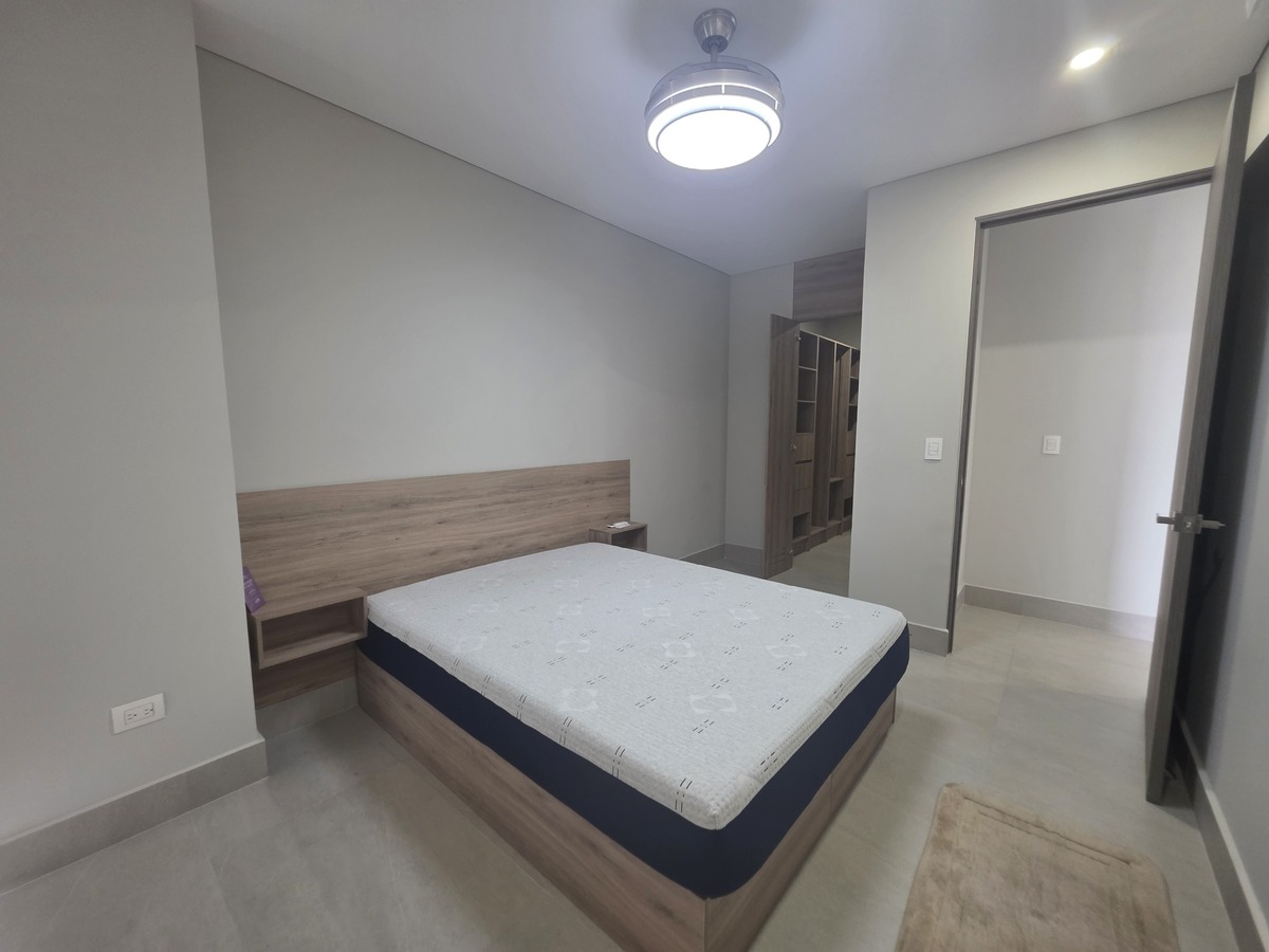 La recámara principal cuenta con un amplio walking closet y baño completo y tiene una cómoda cama queen size con burós y cabecera. La recámara secundaria tiene un amplio y funcional closet de cabecera con mesas de noche y cama queen size. El departamento cuenta con otro baño completo, que funciona como baño de visitas.