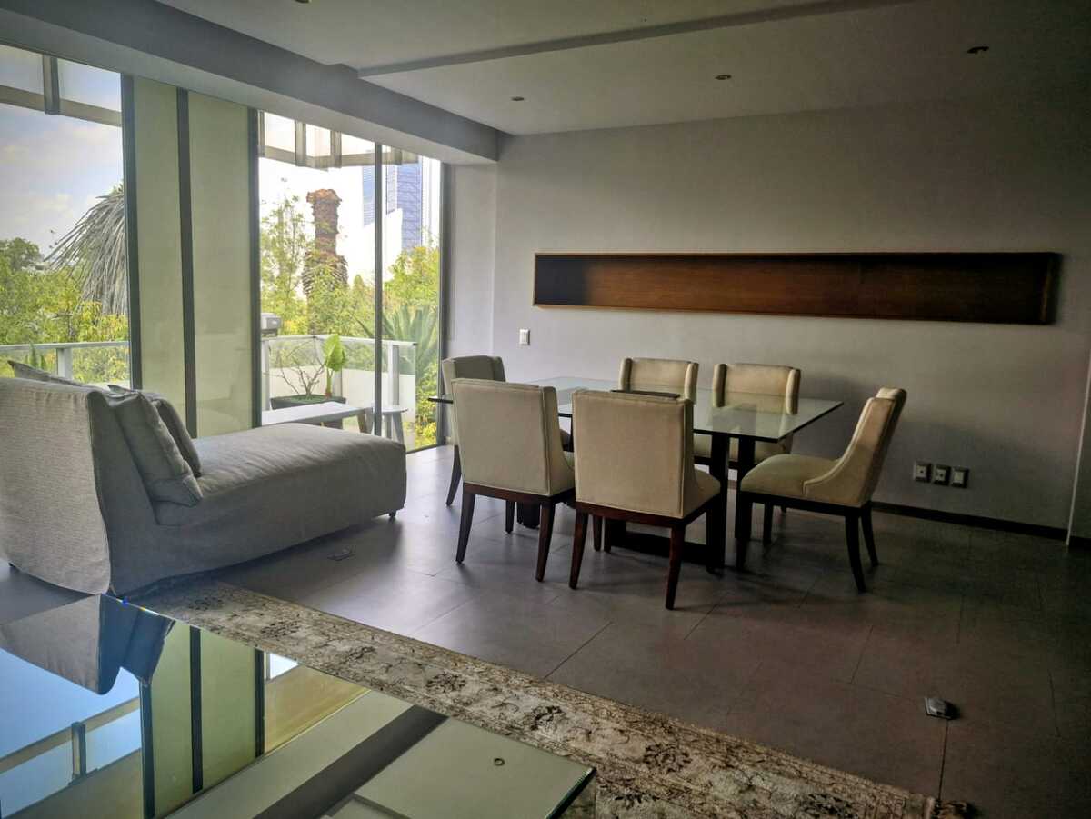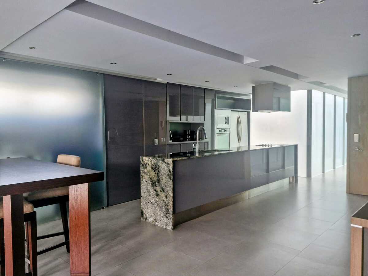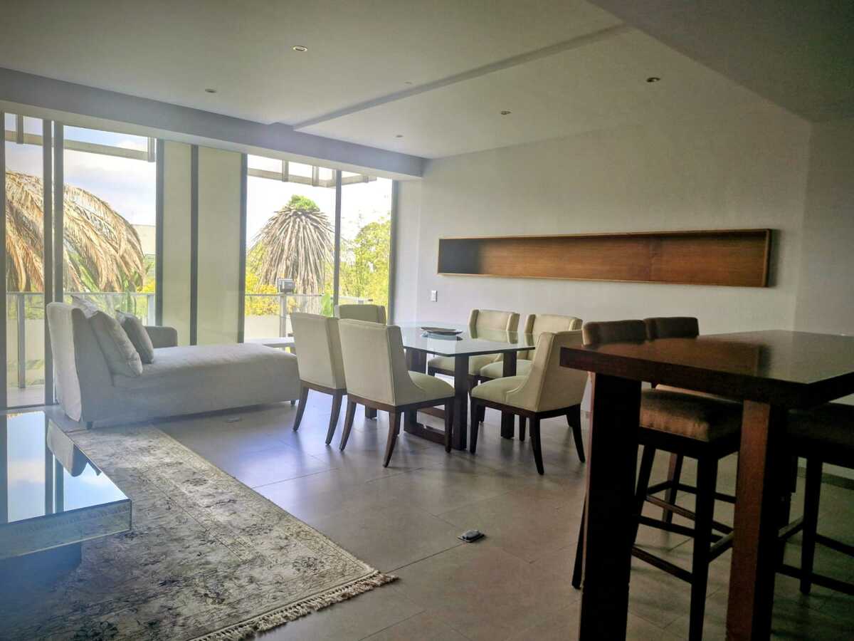 With or without furnitureCuenta con 2 recámaras con baño y vestidor, sala comedor con terraza, cocina abierta, baño de visitas y 2 estacionamientos.