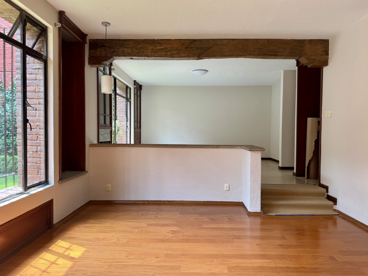 * Comedor y Sala con chimenea con vista al jardín y muy buena luz.