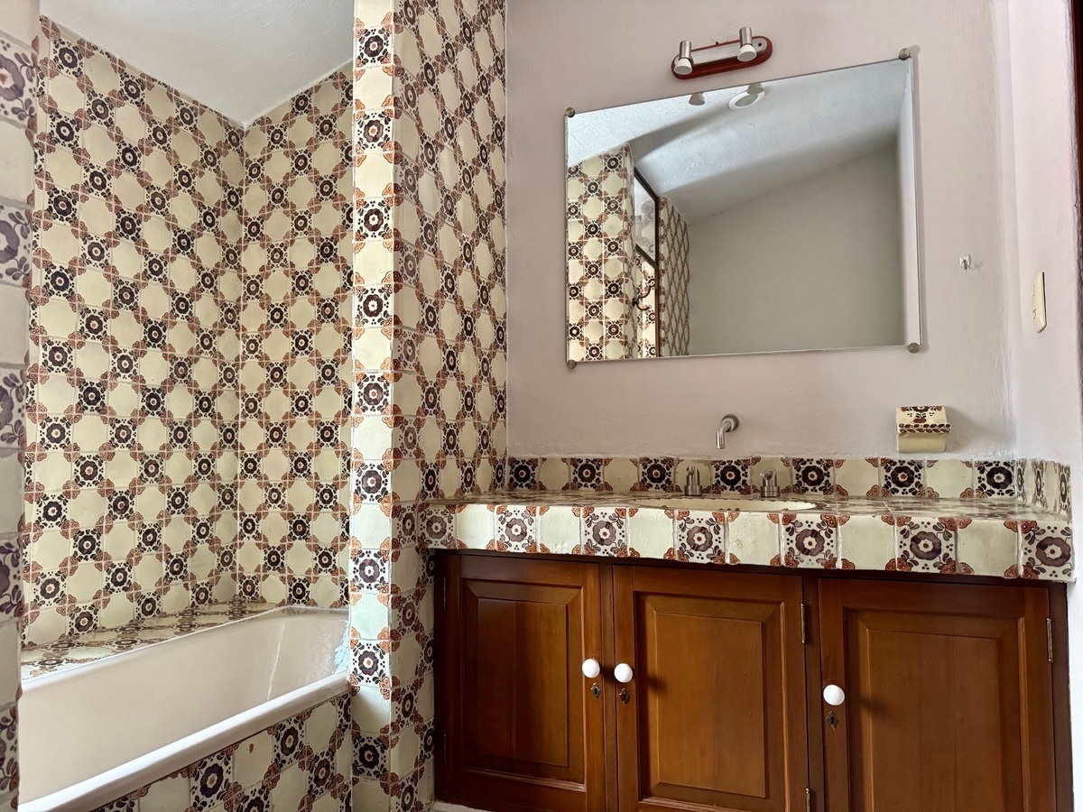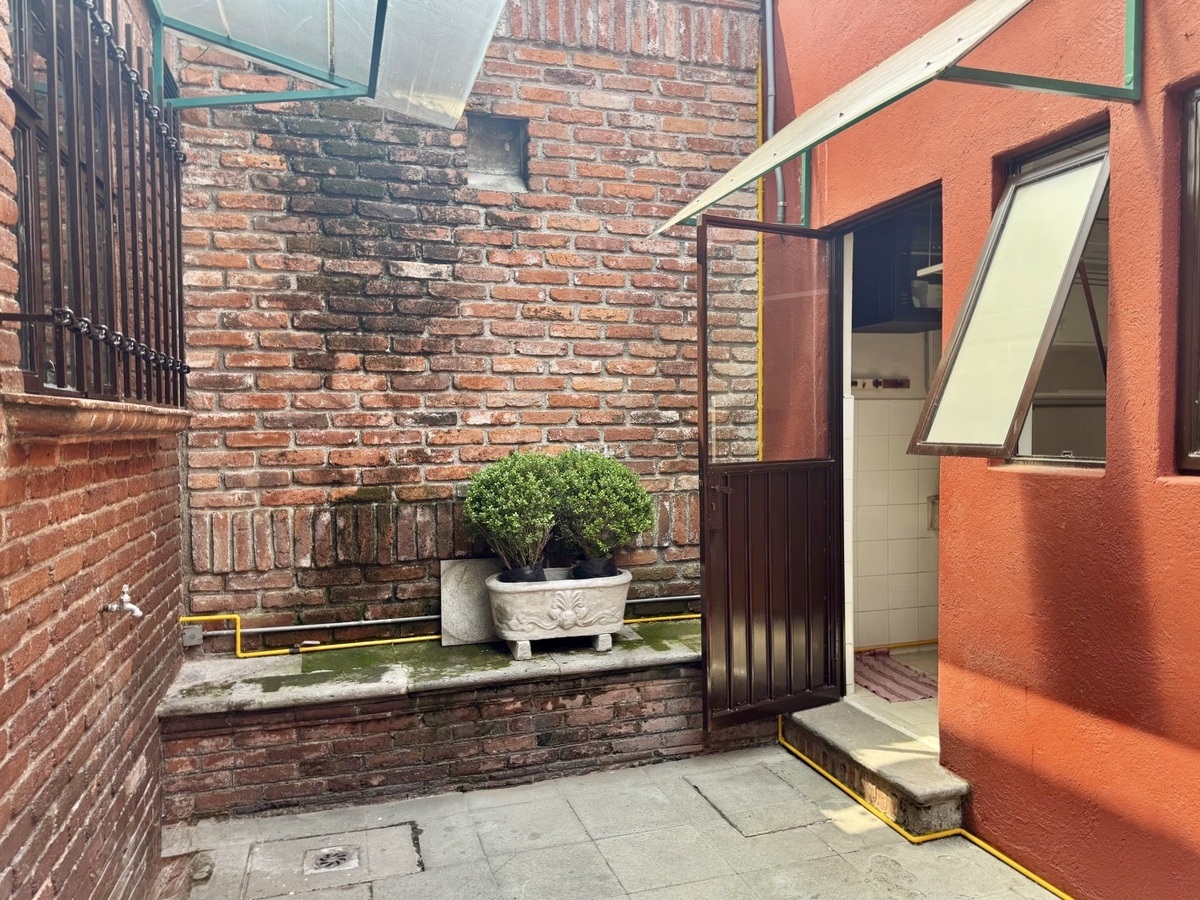 Main entrance with a wooden Puebla door with independent access to the service area.