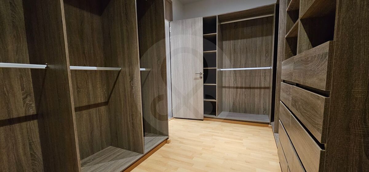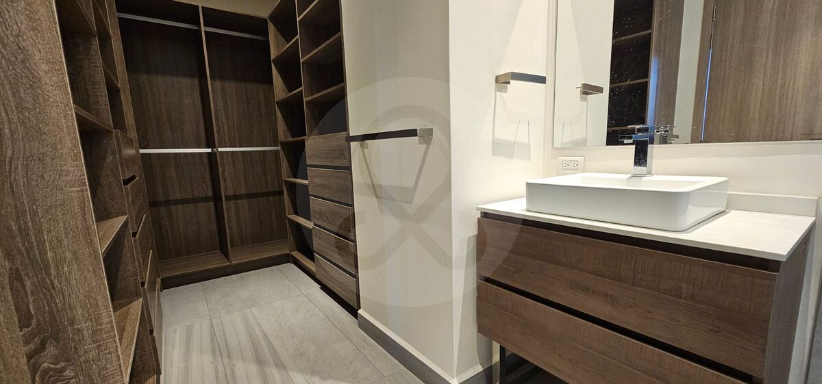 The apartment is: 240 m2 of living space, terrace, and balcony in the master bedroom. 3 bedrooms, 3 1/2 bathrooms, dressing room, study, living room, dining room, kitchen, laundry room, service bedrooms, storage room, and 3 parking spaces per apartment.