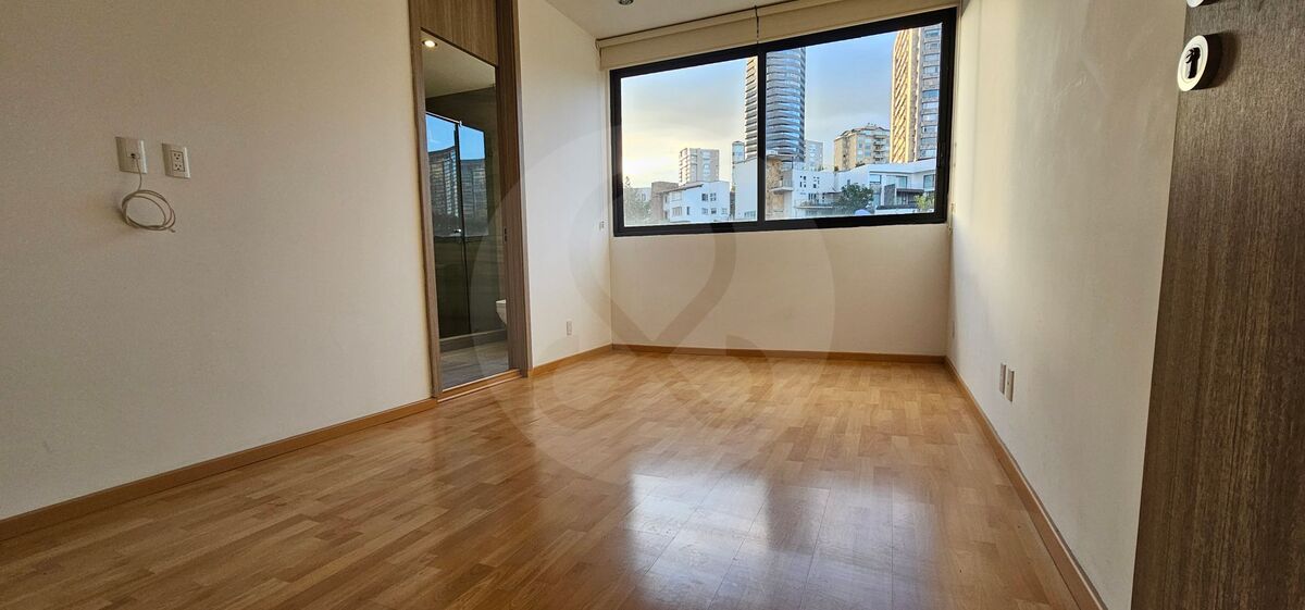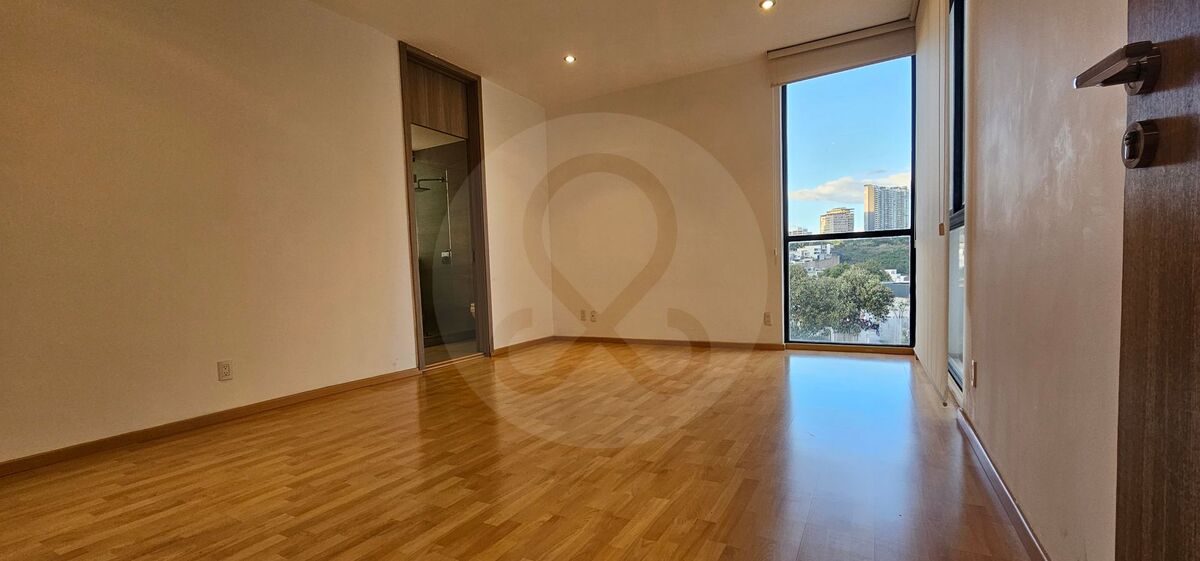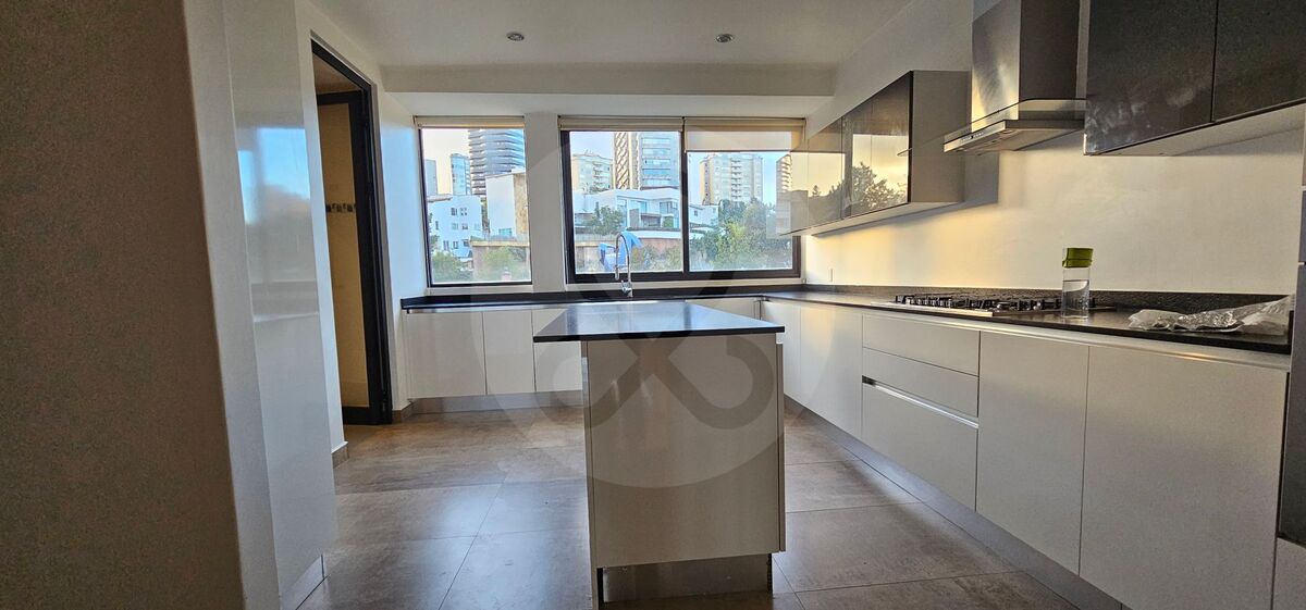 El departamento es de: 240 m2 habitables terraza y balcón en recaámara principal. 3 recámaras, 3 1 / 2 baños, vestidor estudio, estancia, comedor, cocina, cuarto de lavado recámaras de servicio, bodega y 3 estacionamientos por departamento.