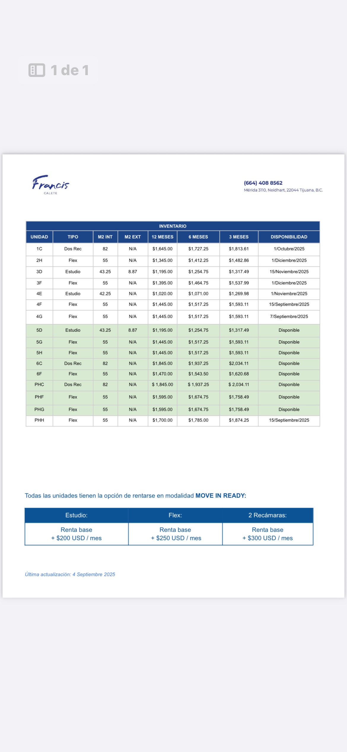 renta base desde $1,100dlls